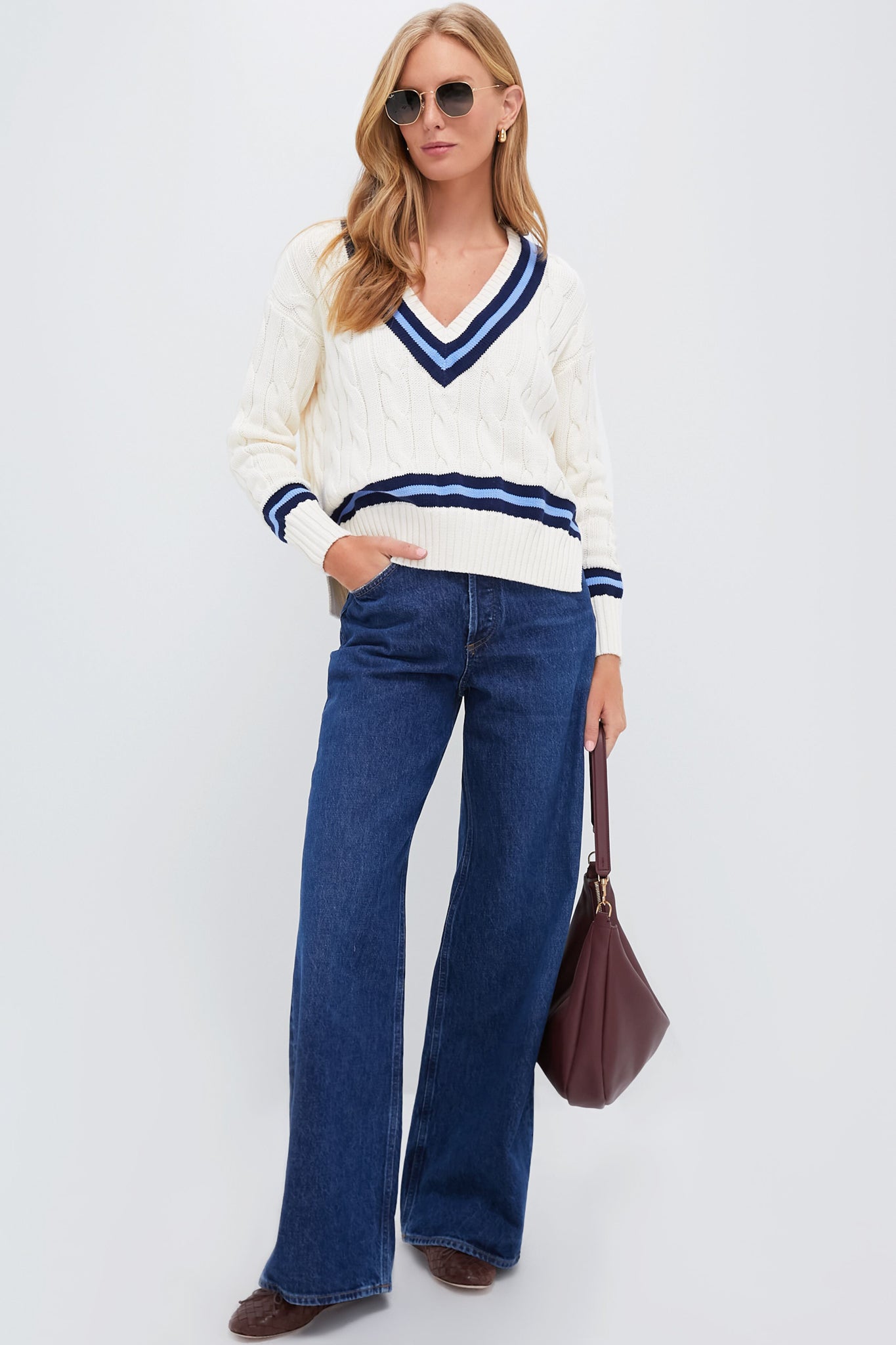 Cozy cable knit meets varsity stripes