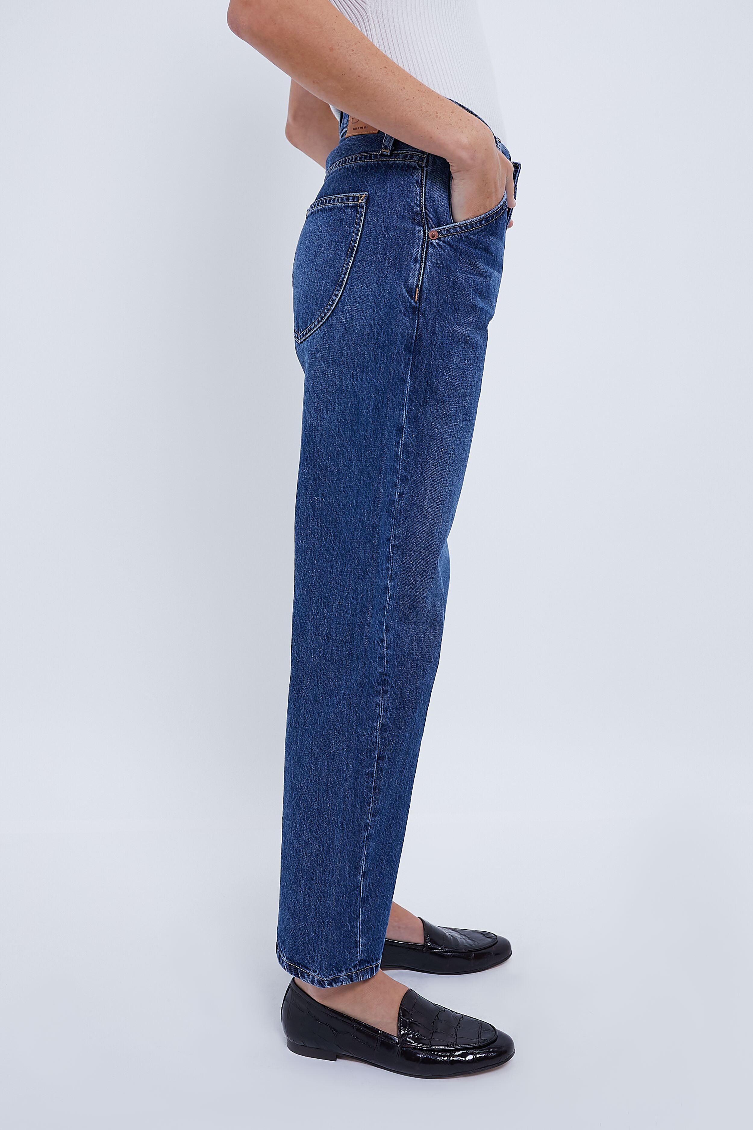 Dark Nova Barrel Jean sits lower on the waist with loose fit through the legs and taper from the knee down the side seams curve towards the front and create a slight curved. slouchy leg barrel silhouette. Perfect for weekend adventures and running errands. we are styling these beauties with crisp white sneakers. a graphic tee. and a blazer for an afternoon in the city!