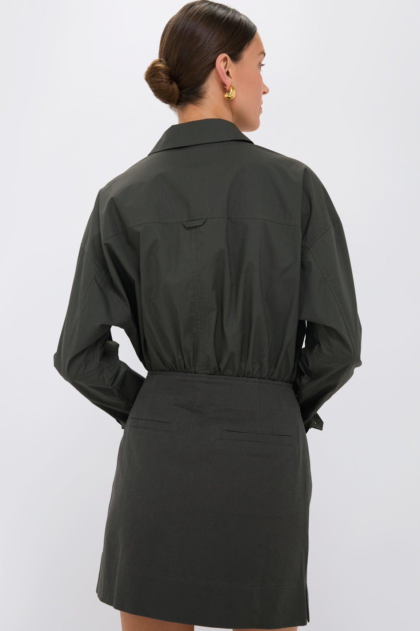 The Deep Olive La Reina Mini Shirt Dress is an elegant style with a classic front button placket. shirred waist. and flattering wrap skirt. We are styling it with boots or heels for all of our elevated occasions!