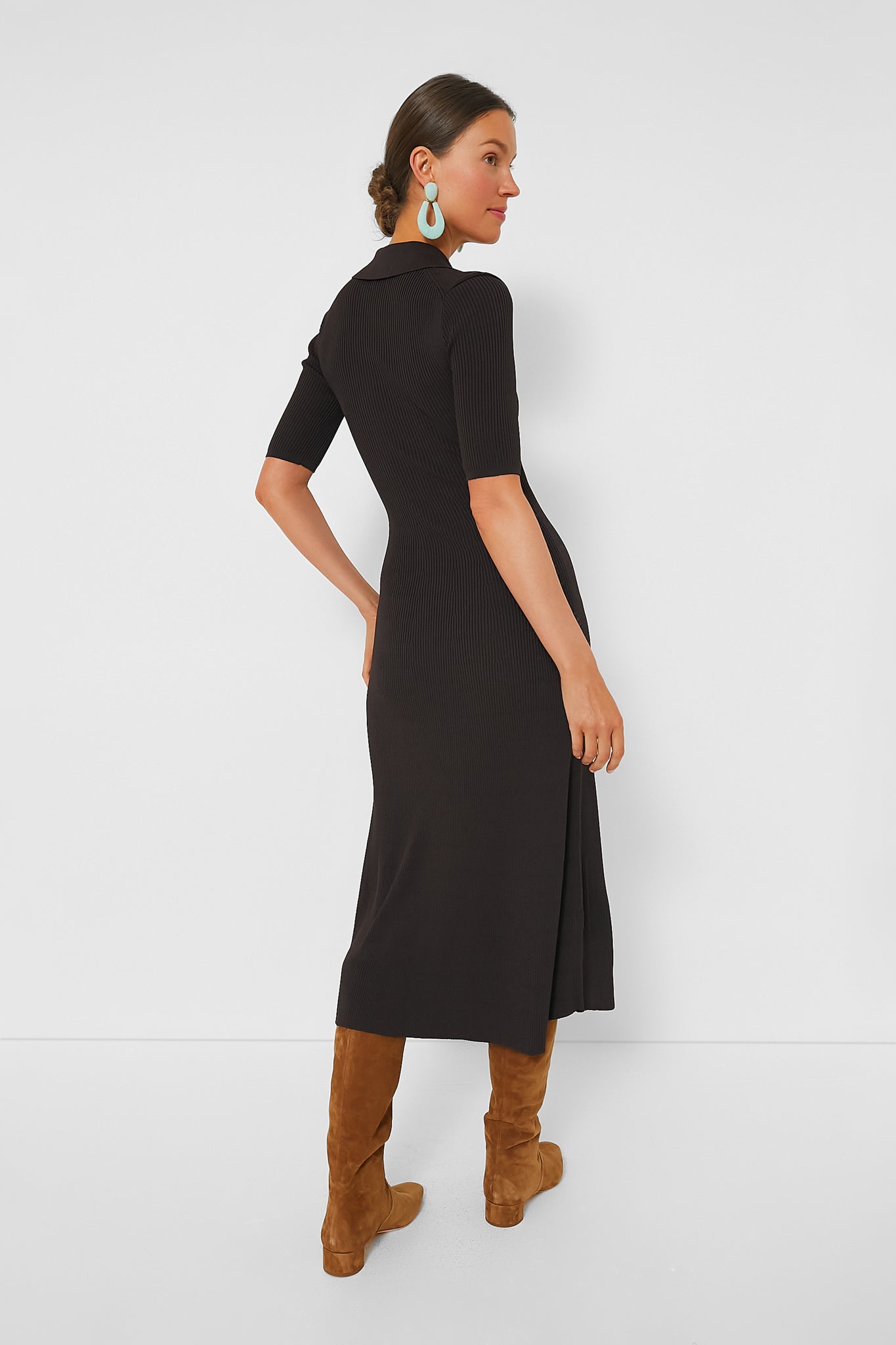 Say hello to your new best friend. It doesn't get much easier than the Earth Roland Dress. a sleek knit midi with elevated details such as a collared neckline. front zip closure. and ballerina-length sleeves. Easy for everyday wear or occasions. we are styling this with boots. sandals. or ballet flats and throwing on a cardigan for an easy look.