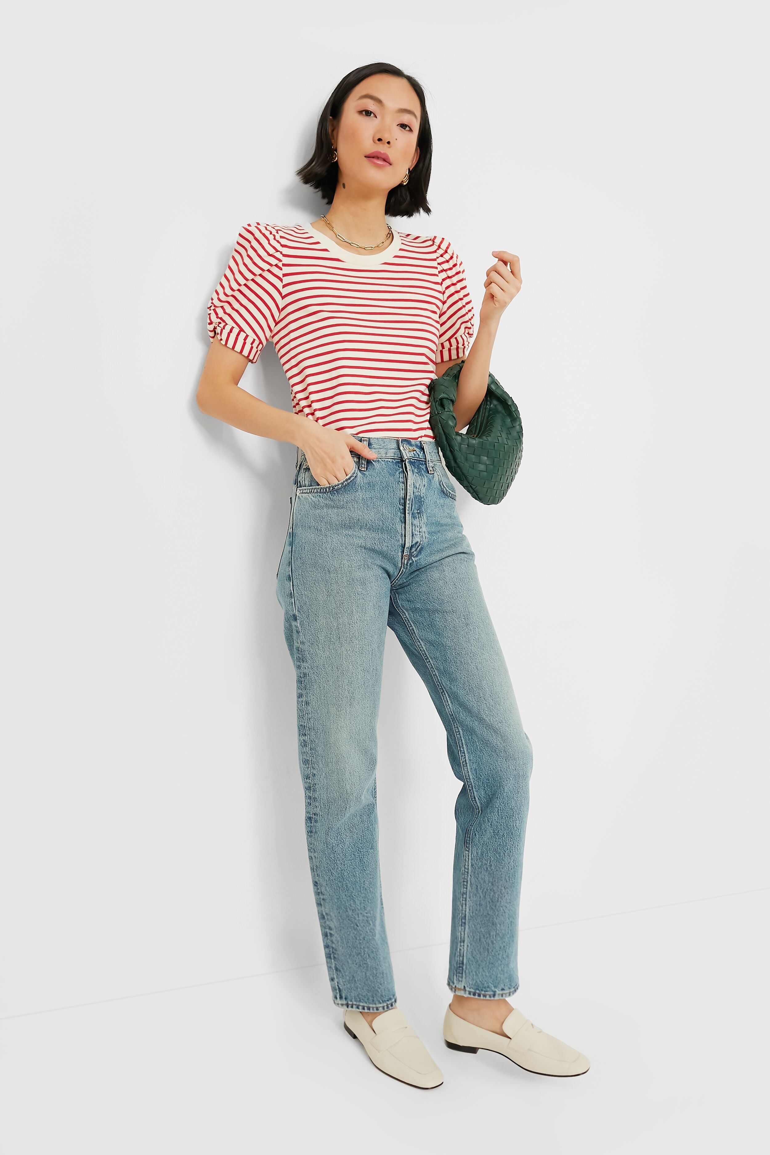 These classic Ecru Leather Soft Placket Loafers are a capsule closet must-have. With a classic penny loafer silhouette. a supple lamb leather. and a cushioned insole. these are an elevated look that ensure all-day comfort to get you through busy days. Dress down with denim and a blouse. or dress up with trousers and a blazer- these are perfect for everything from work meetings to coffee dates.
