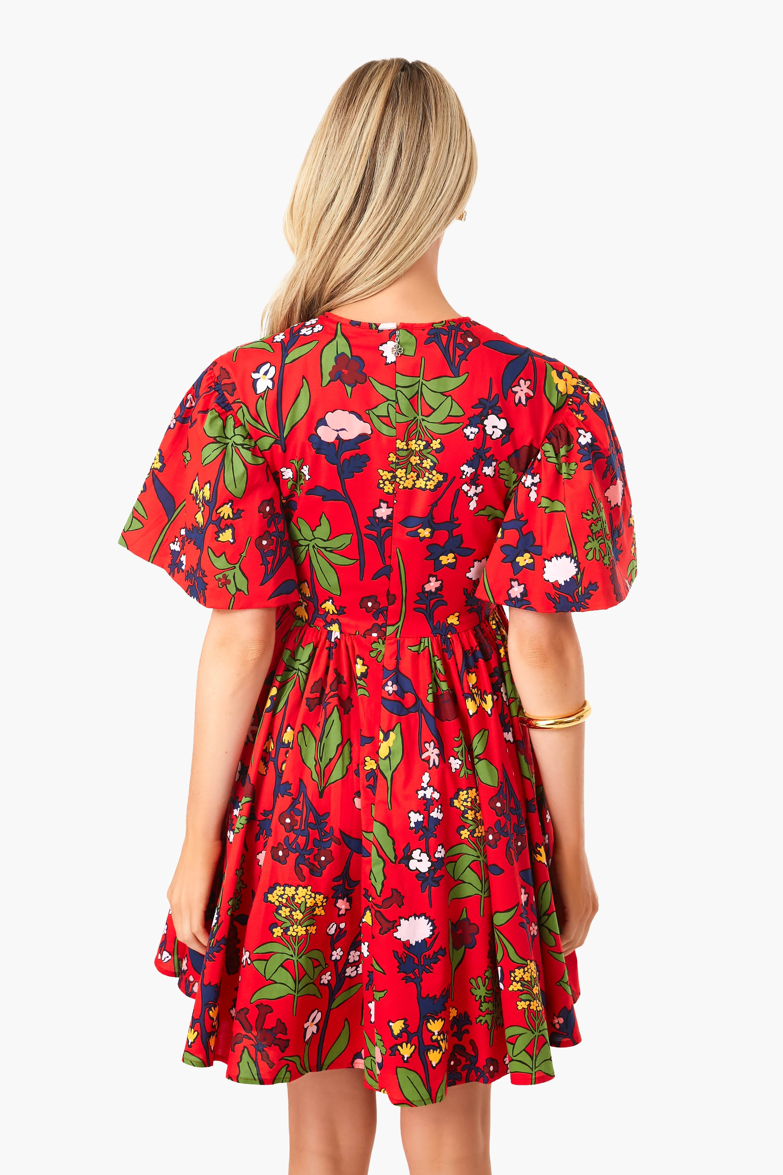As suggested by its name. the Engine Red Botanical Garden Greenwich Dress is the perfect style to wear when frolicking around a botanical garden. In a feminine silhouette with a jewel neckline and voluminous flounce sleeves. this fun mini is ready to go anywhere and everywhere. Dress it up with heels and gold jewelry for dinner al fresco or dress it down with white sneakers for tailgates and picnics.