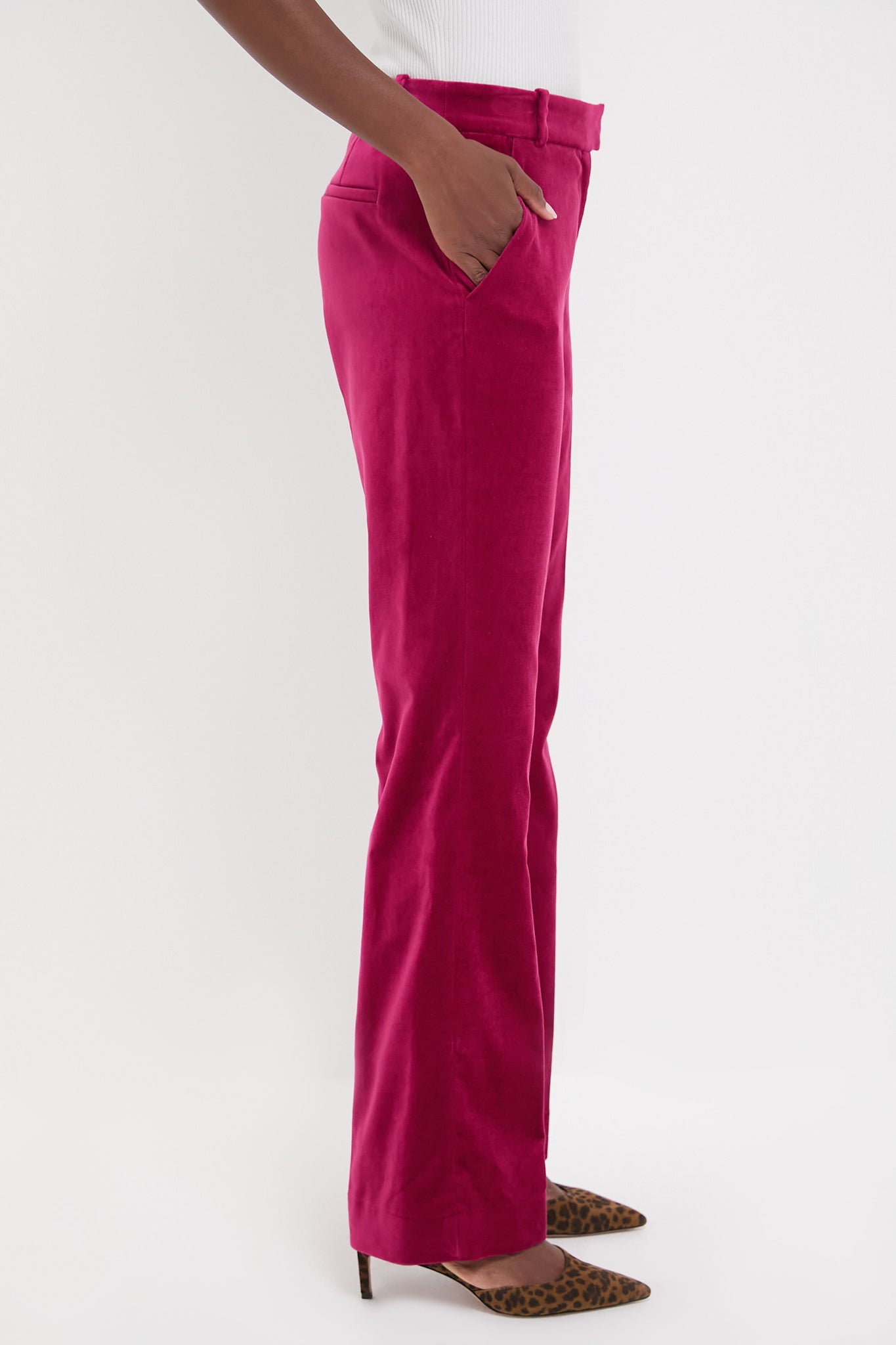 Inspired by '70's. the Fuchsia Babilon Pants are cut for a flattering fit. thanks to a mid rise. pleated front and boot cut. Elevate a simple sweater with this statement style or go all out with the matching Fuchsia Boop Jacket for a show stopping look.
