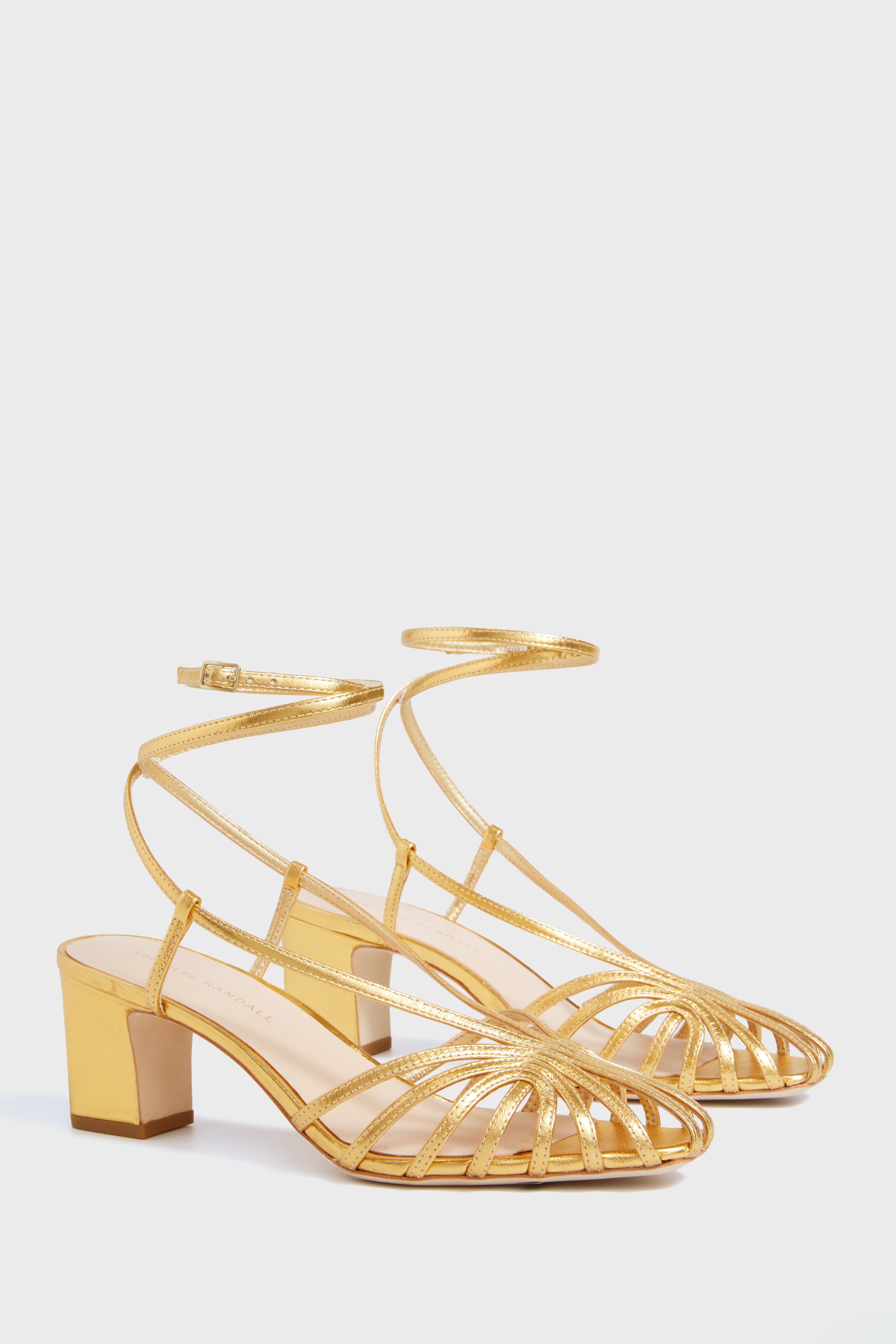 The Gold Metallic Livvy Heels are an old-Hollywood-chic style that will dress up any outfit. These feature a latticed strap design. tonal sole. and wrap-around ankle strap with an adjustable buckle closure. Pair with an LBD for date night. or with a formal maxi for a cocktail party.