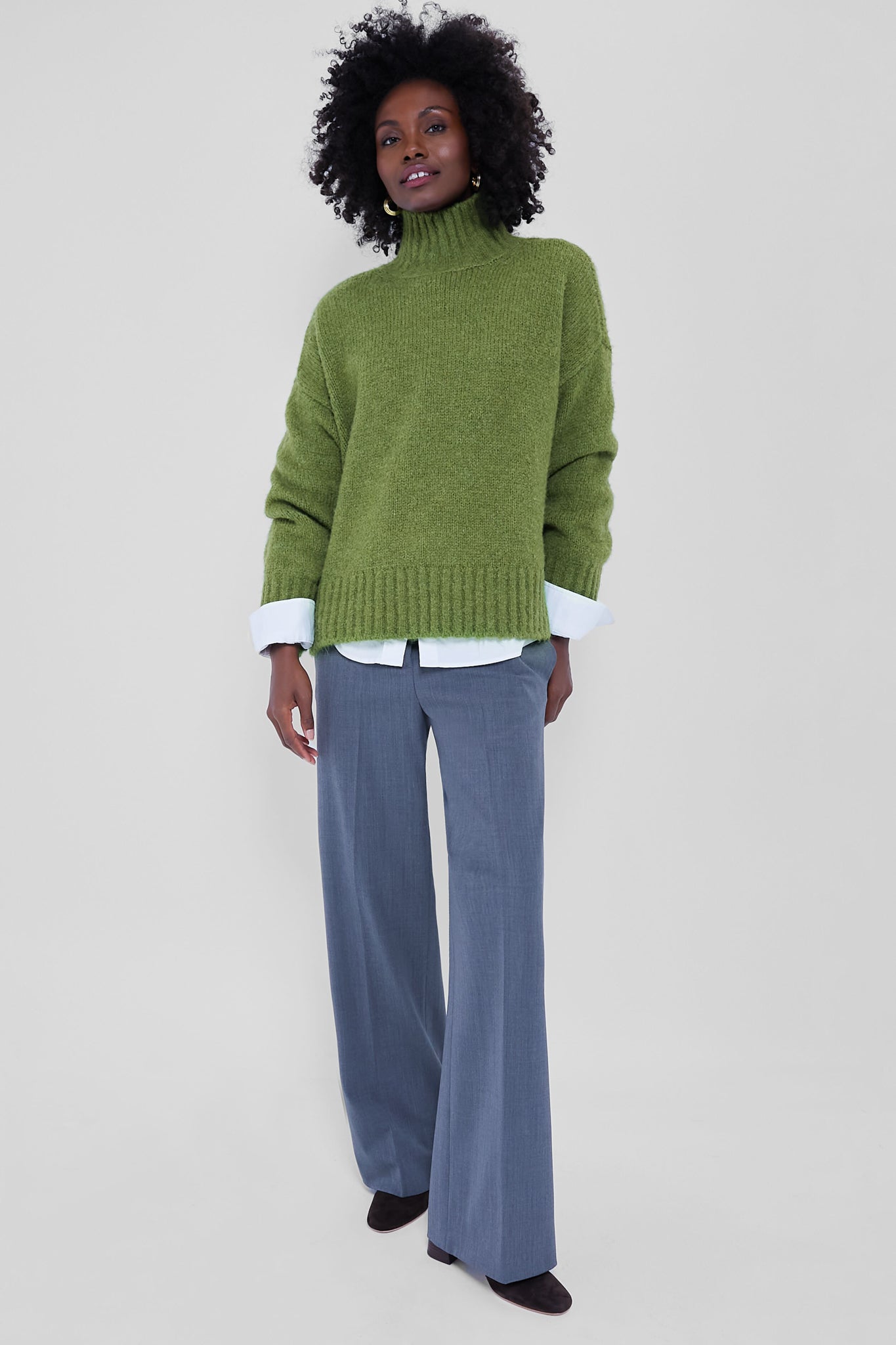 Who said your winter wardrobe has to be boring? The Hannah Sweater begs to differ with its cozy construction and vibrant green colorway. Perfect for everyday wear. we are styling it with a leather maxi skirt and boots or denim and ballet flats!