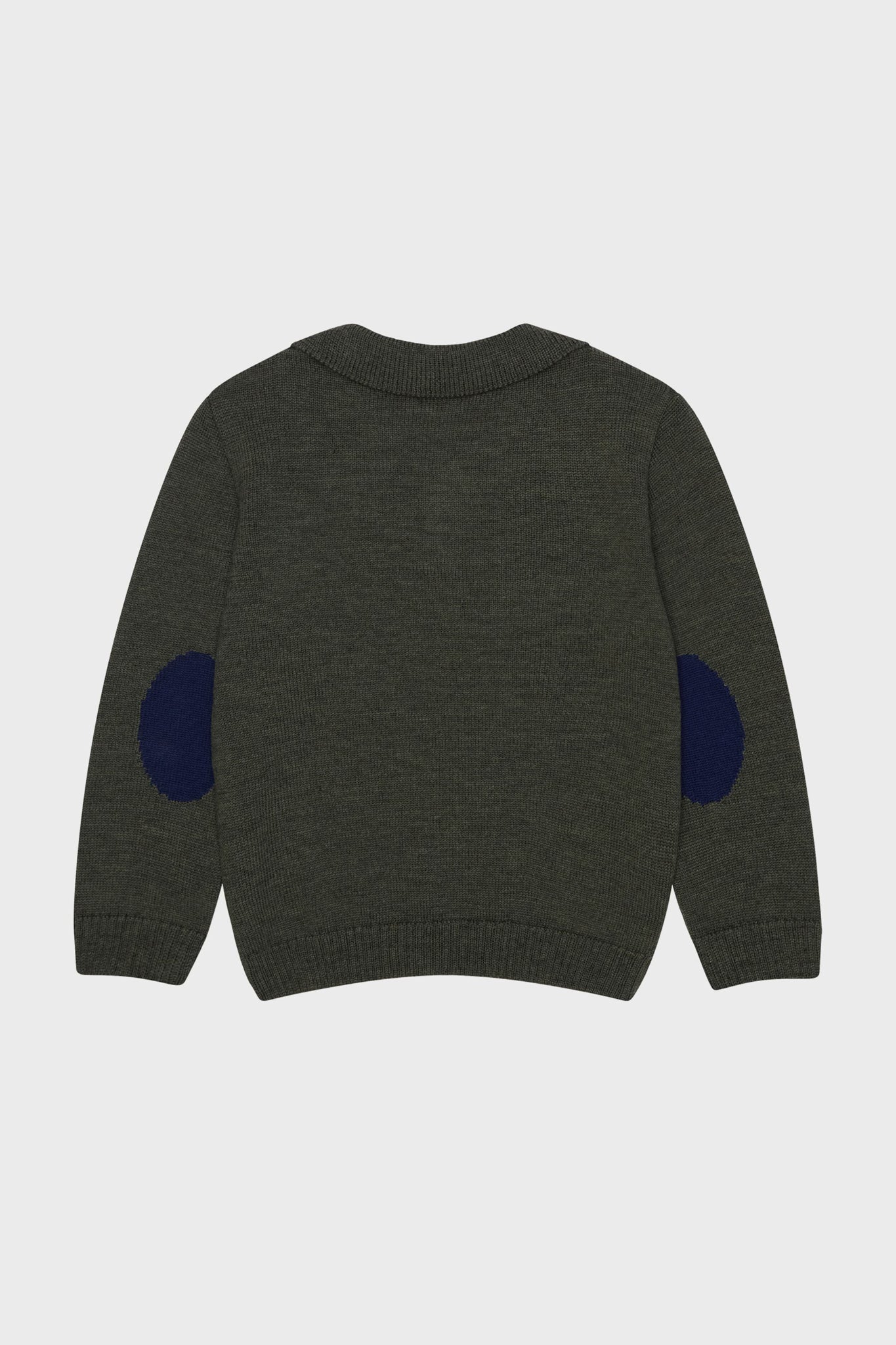 - Navy patch detail on elbow