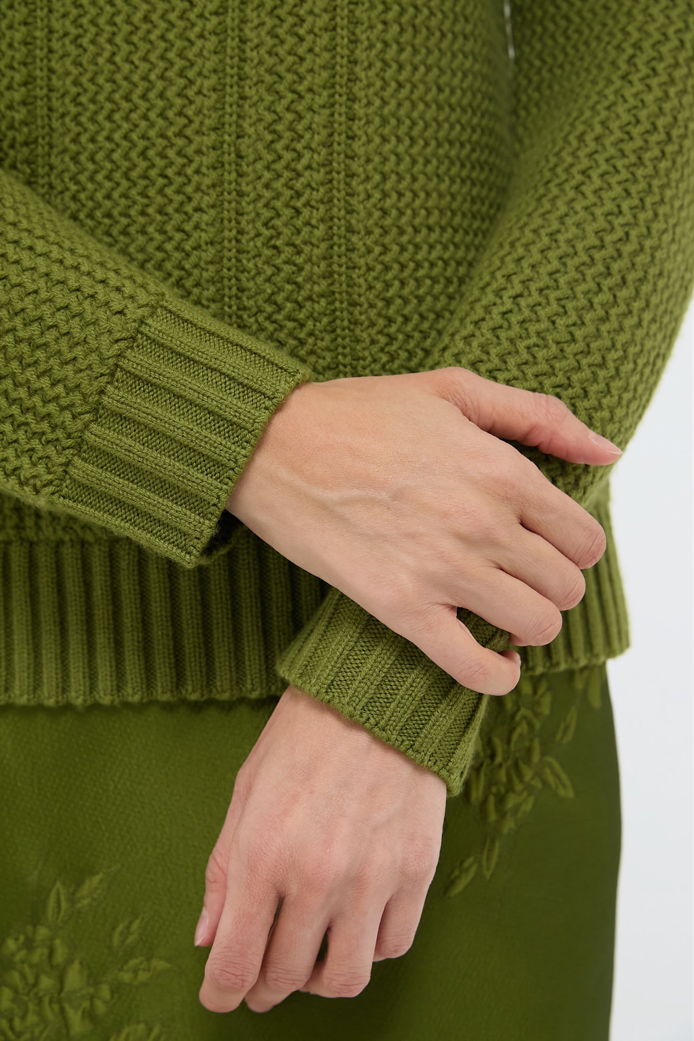 The Combey Wool Jumper is beautifully knit from a luxurious. super-soft wool yarn in a rich green hue offering a timeless and versatile addition to your wardrobe. With its ribbed texture and classic fit. this sweater can be dressed down with a blazer. denim. and loafers. or elevated with a midi skirt. heels. and statement earrings for evening wear. so it is about to become a well-loved addition to your closet.We recommend pairing with the matching Fern Green Lorelei Graphic Rose Skirt.