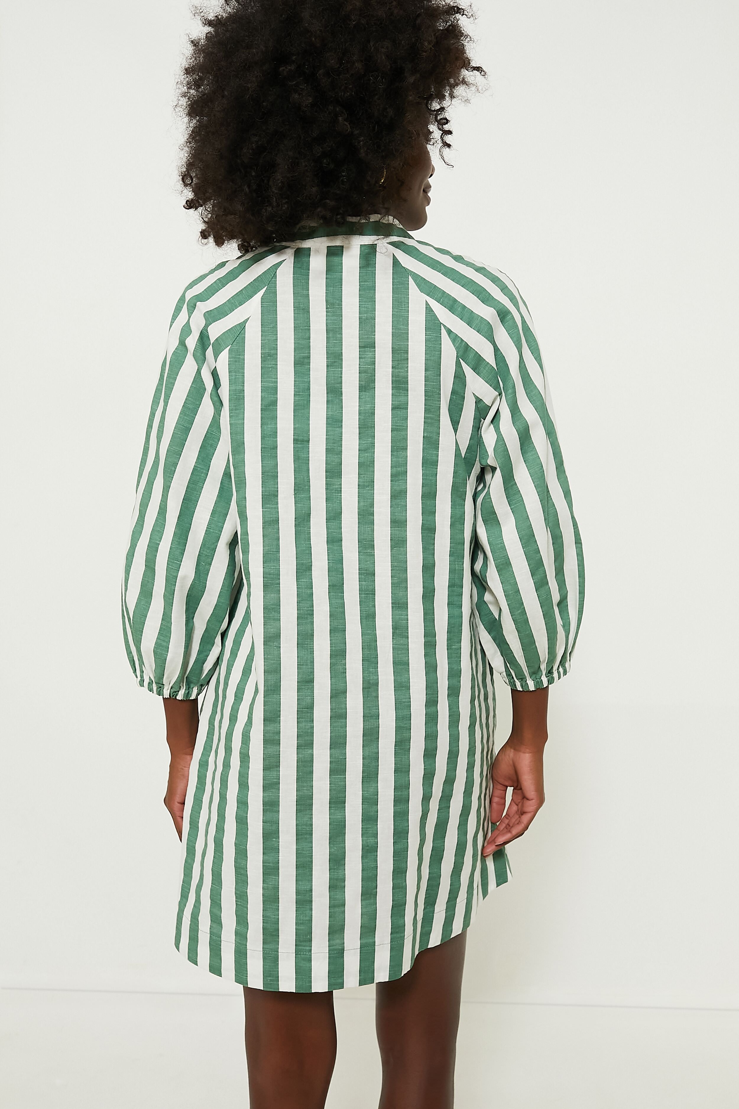 Head out to brunch by the beach in the Green Stripe Maryse Mini Caftan. Featuring a fun striped pattern. side seam pockets. and a relaxed fit. this number is sure to be a crowd pleaser. Style with sandals and shades for a stroll around the farmers market or with a bathing suit and beach bag for a tanning session by the water.