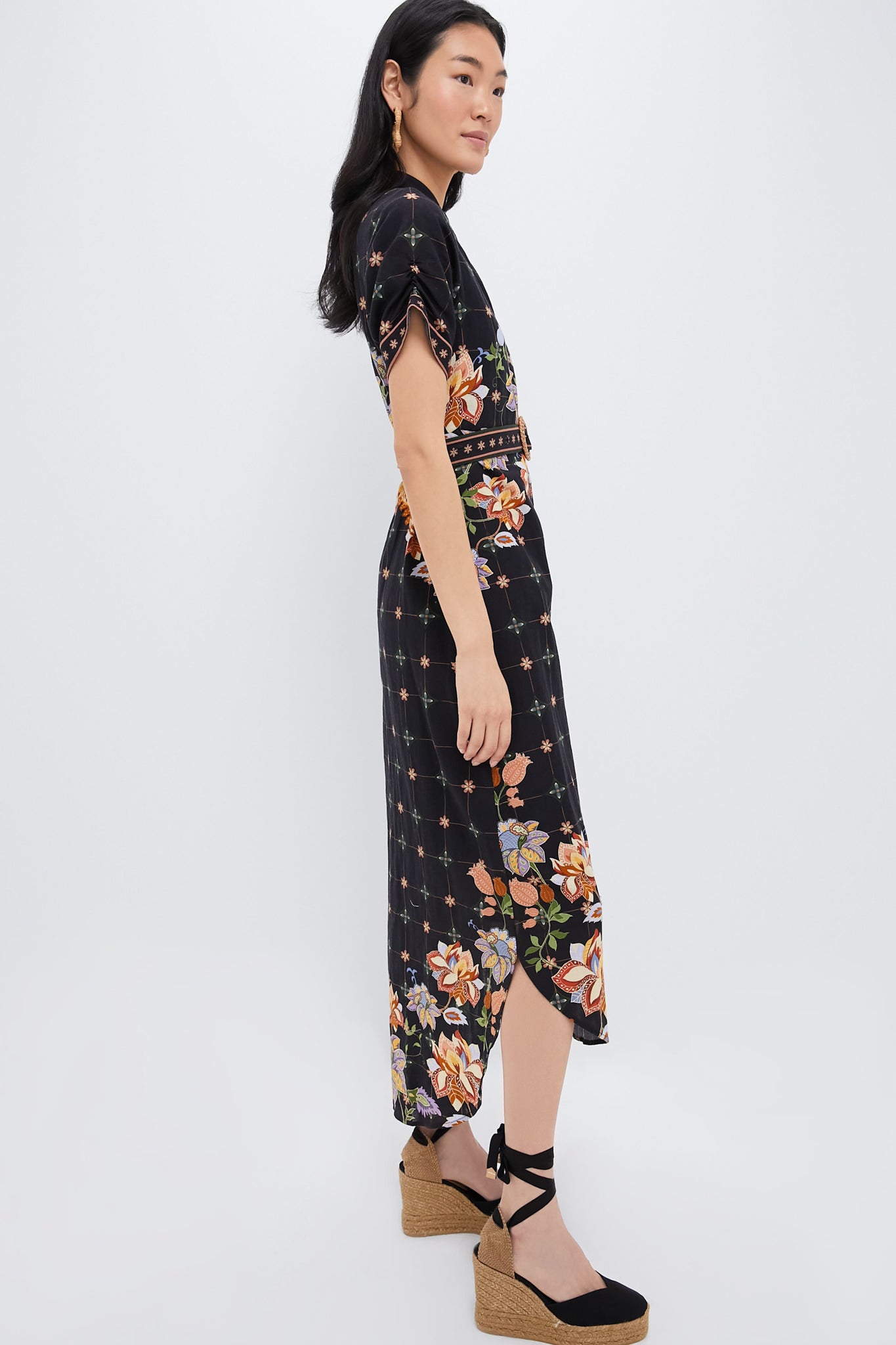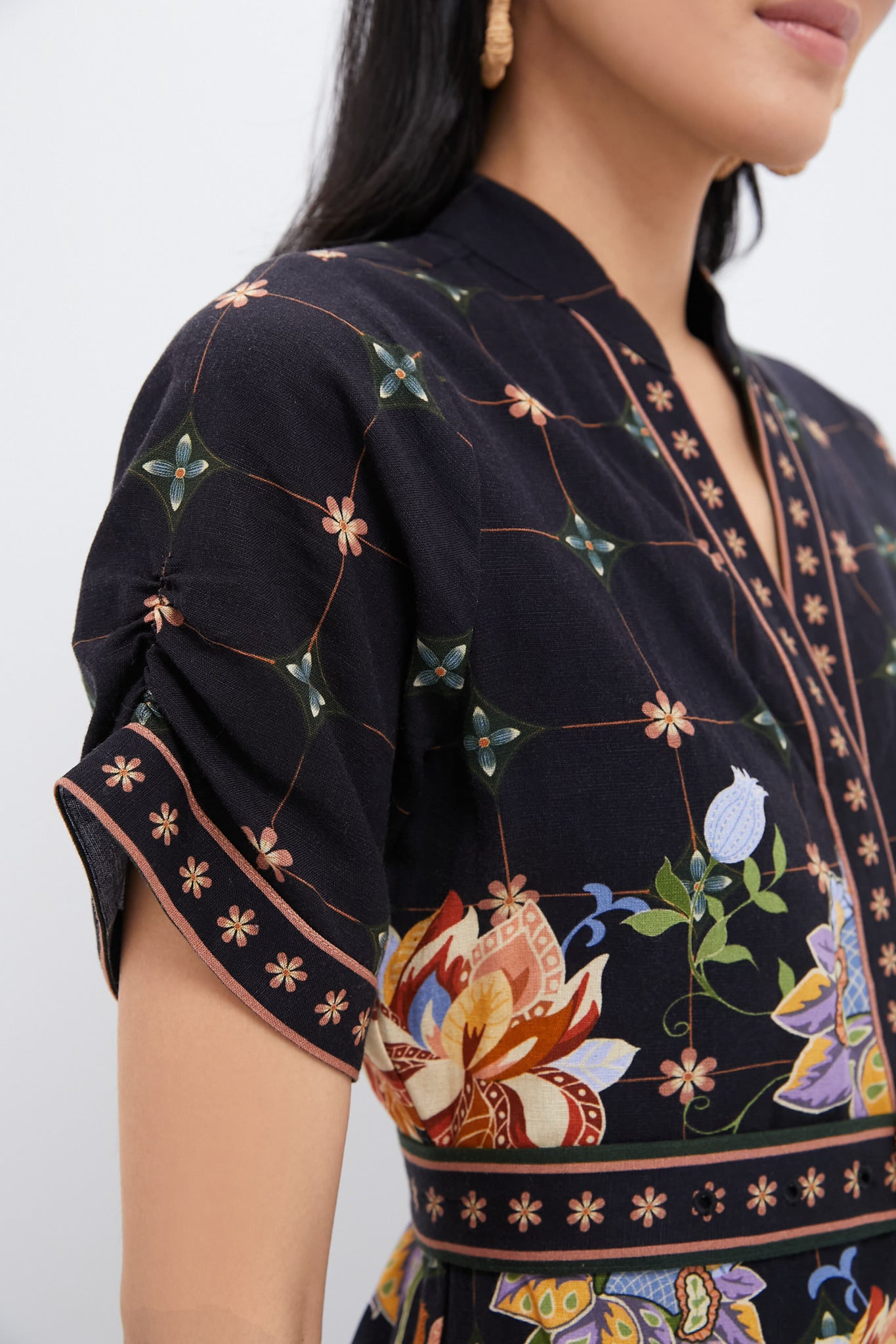 - Short sleeves with ruched hem detail