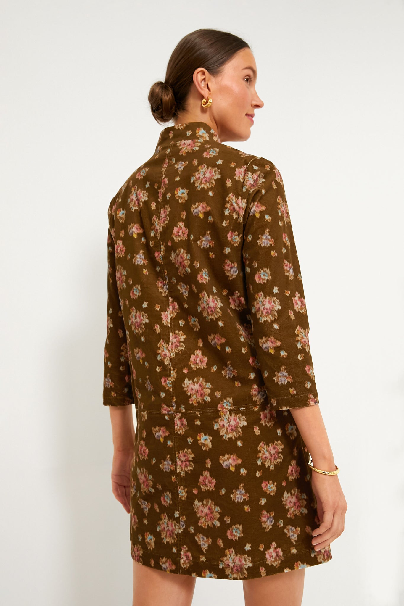 Featuring a stand collar. V-neckline. and three-quarter length sleeves. this fan favorite is now in a vintage inspired corduroy fabric which means no wrinkles. more comfort. and less upkeep! Super versatile. this mini can work for every occasion. so it is no surprise that it will be your go-to for everything from cocktails with friends to farmers' market trips to date night.