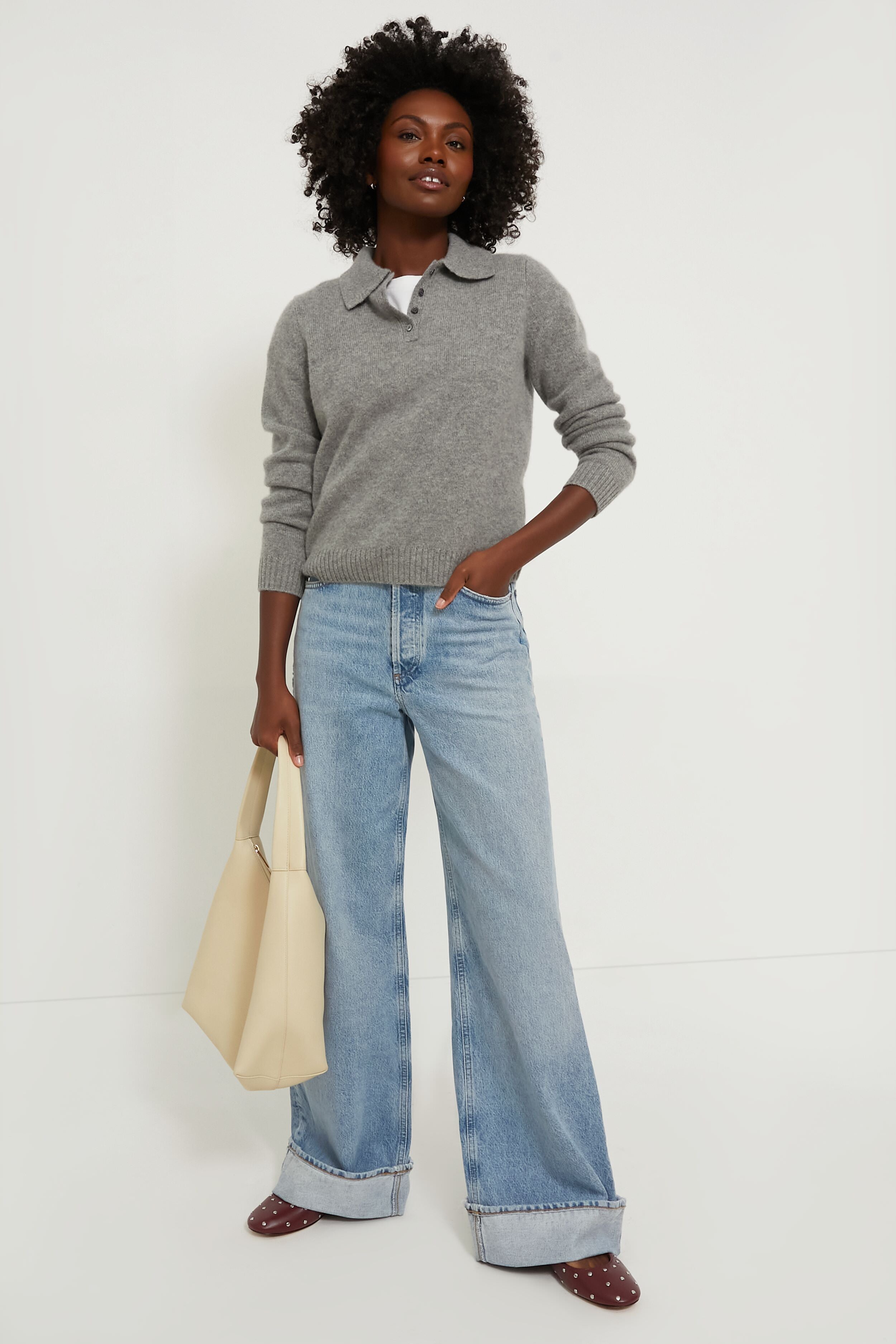 Cashmere is a style staple for the cold-weather months. and this Alice Polo Sweater does it in the best way. With a partial front button placket. collared neckline. rib knit trim. this style is as elevated as it is easy. Pair with maxi skirts or denim for all of your busy (and chilly) days.