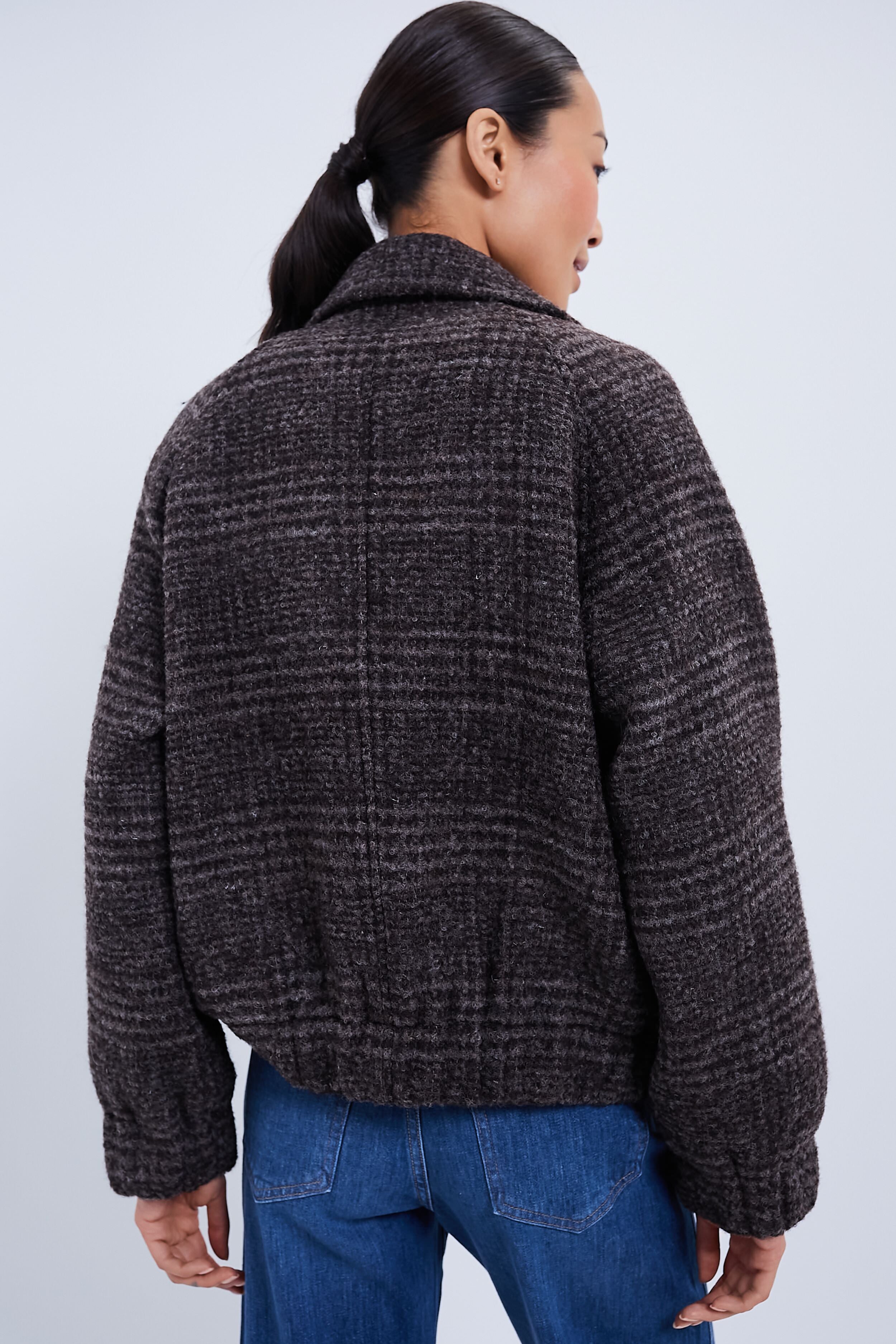 A classic bomber updated with luxe tweed