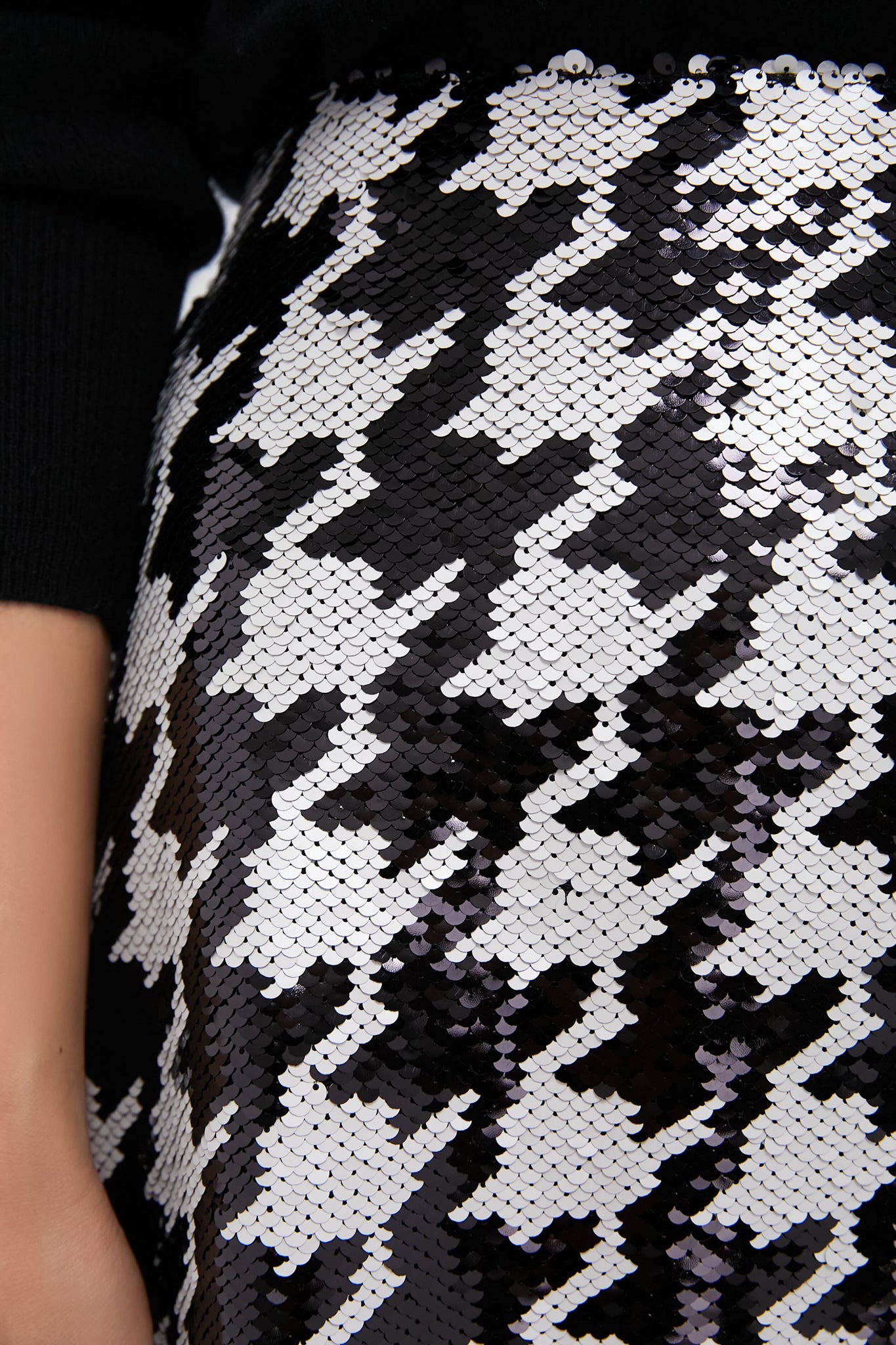 Nothing says "let's party" like sequins - the Meg Skirt brings the perfect touch of glam to any outfit. With a classic houndstooth that brings a hint of vintage appeal and a flirty and fresh A-line shape. it's everything you could want this holiday season! Pair it with a sweater and boots for an effortlessly chic holiday outfit for your next occasion!