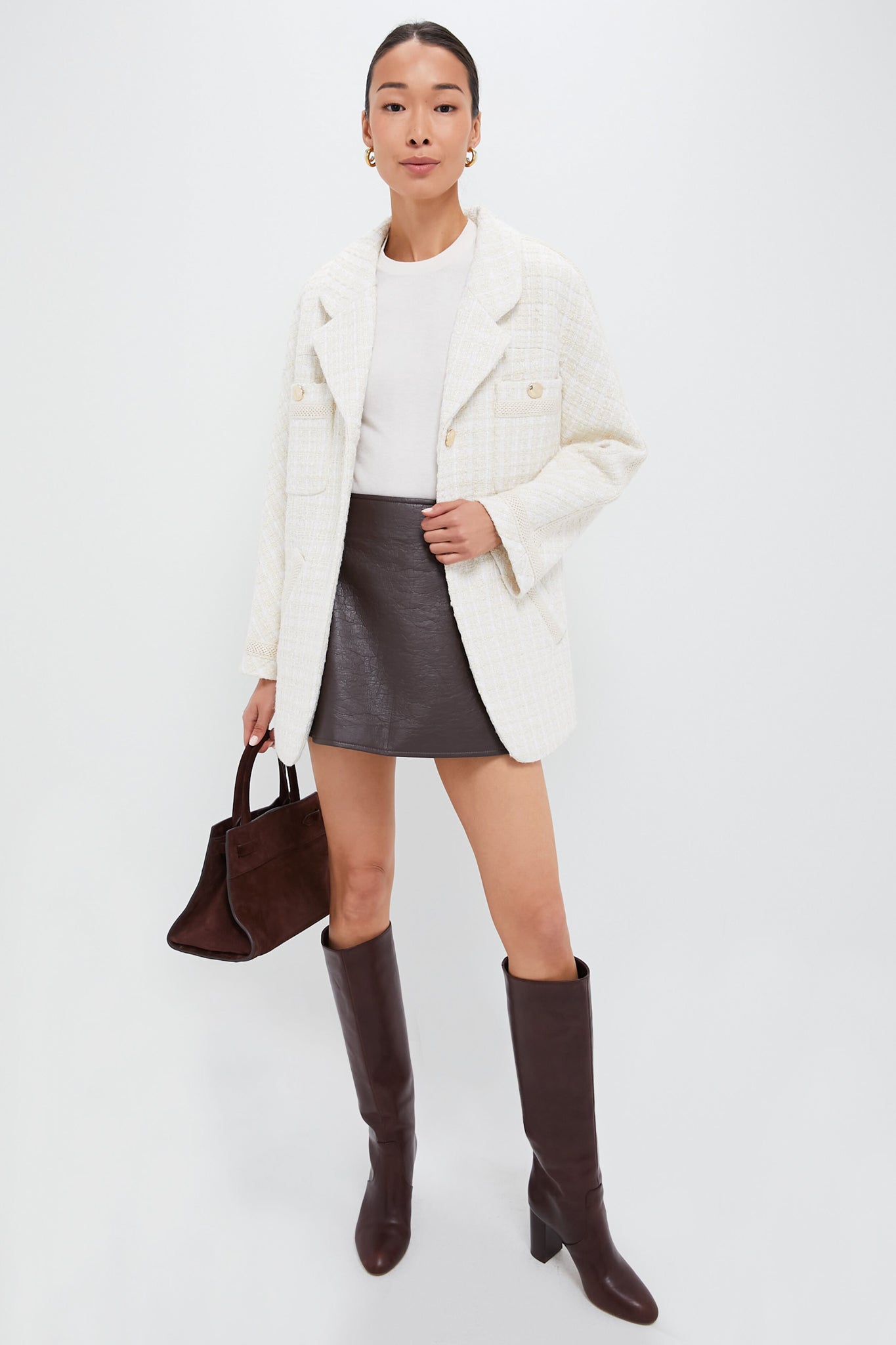 The Ivory Tweed Renata Jacket is an elegant and sophisticated silhouette to dress up any outfit. Featuring a relaxed fit. crochet trim detailing. and multiple pockets. there is so much to love about this tweed jacket! We recommend pairing it with and mini skirt and boots for a fun and flirty look!