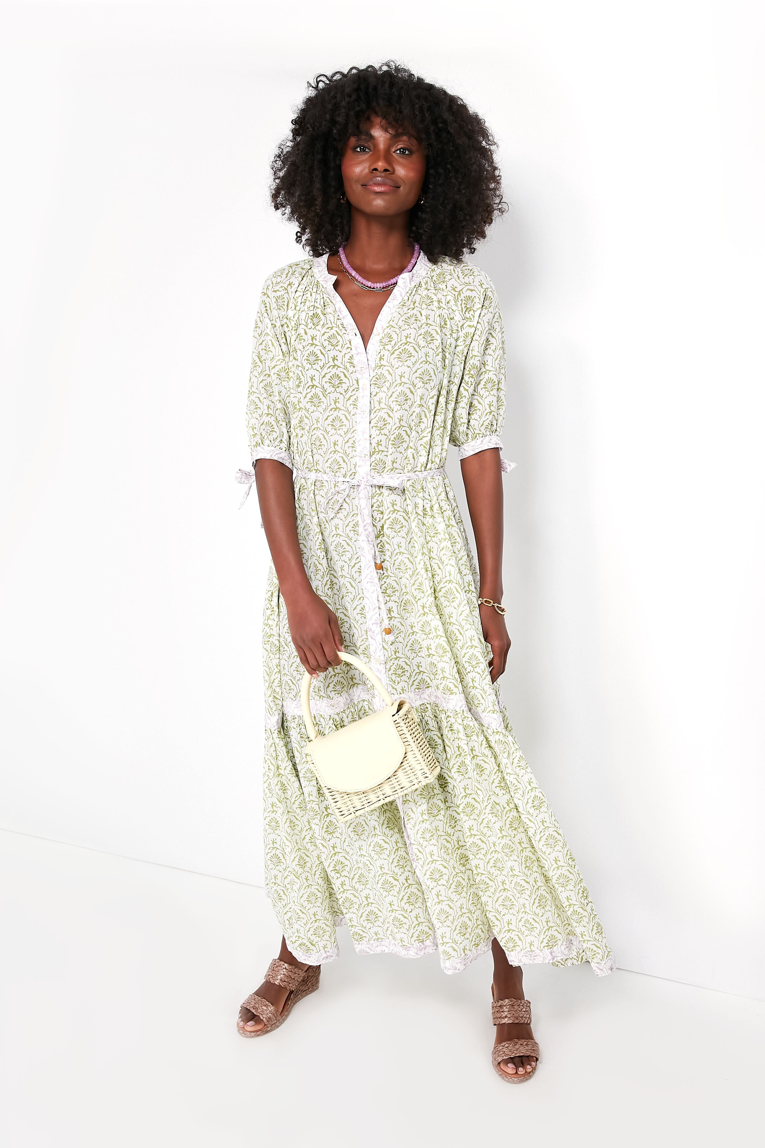 The Laurel Frankie Dress was designed with effortless yet elevated dressing in mind. This A-line silhouette features raglan puff sleeves. a button front. and a drawstring at the waist for a flattering cinching effect. Our favorite detail is the eye catching hand block-printed motifs that cover this maxi. not to mention the contrast trim that lines this charming number. Intended to create some volume at the hem with gathered ruching details. we are wearing this with sandals and dainty jewelry for a cool-girl look from coffee runs to sipping spritzes.