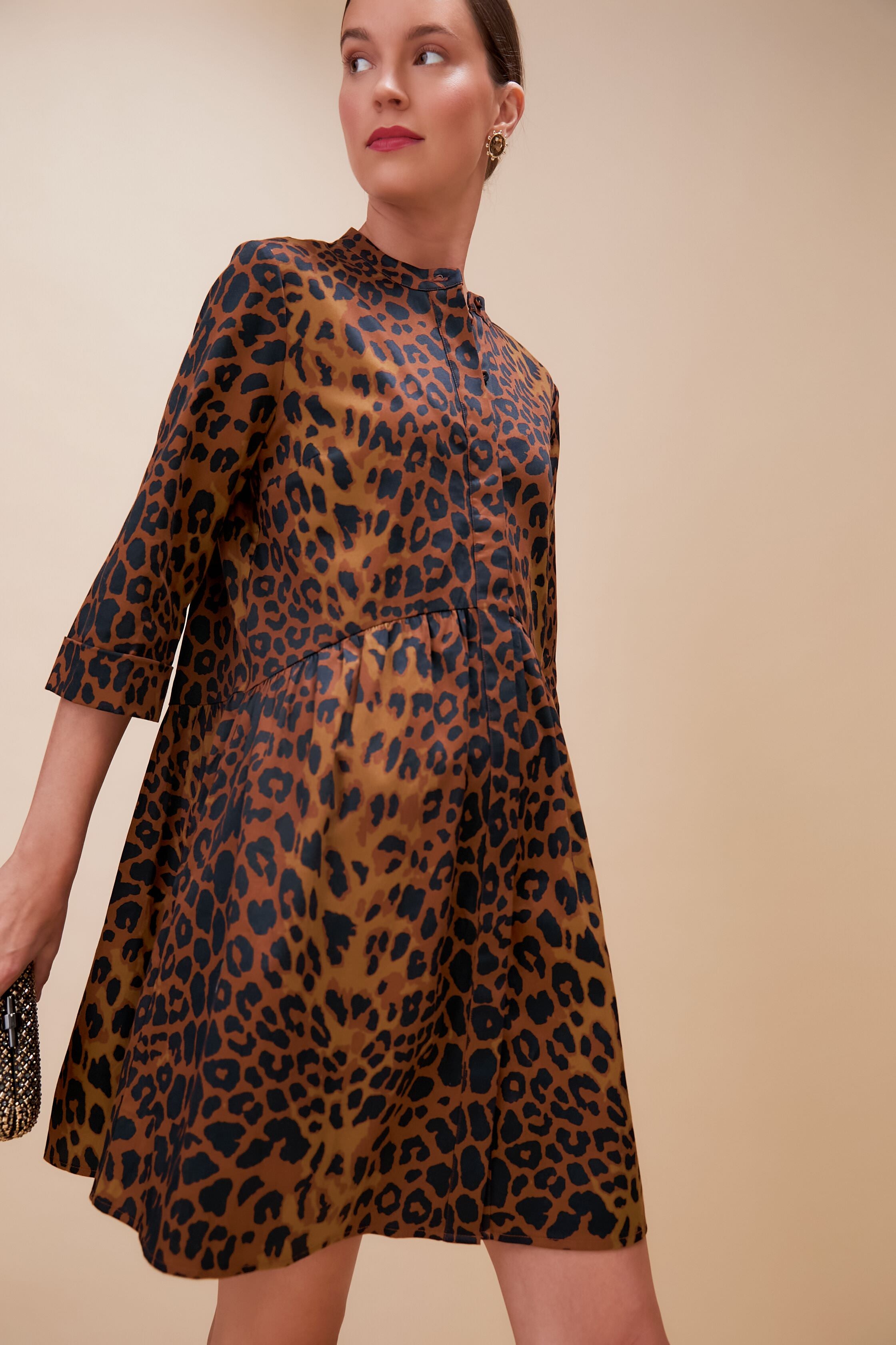 This on-trend printed silhouette is made for your closet! The Leopard Royal Shirt Dress is amazingly lightweight and a perfect transition piece that is easy to accessorize. Featuring a round neckline. three-quarter sleeves. and a front button placket. this mini is flattering and flirty. Style with boots and a shoulder bag for strolling around town. or with platform sandals for dinner.