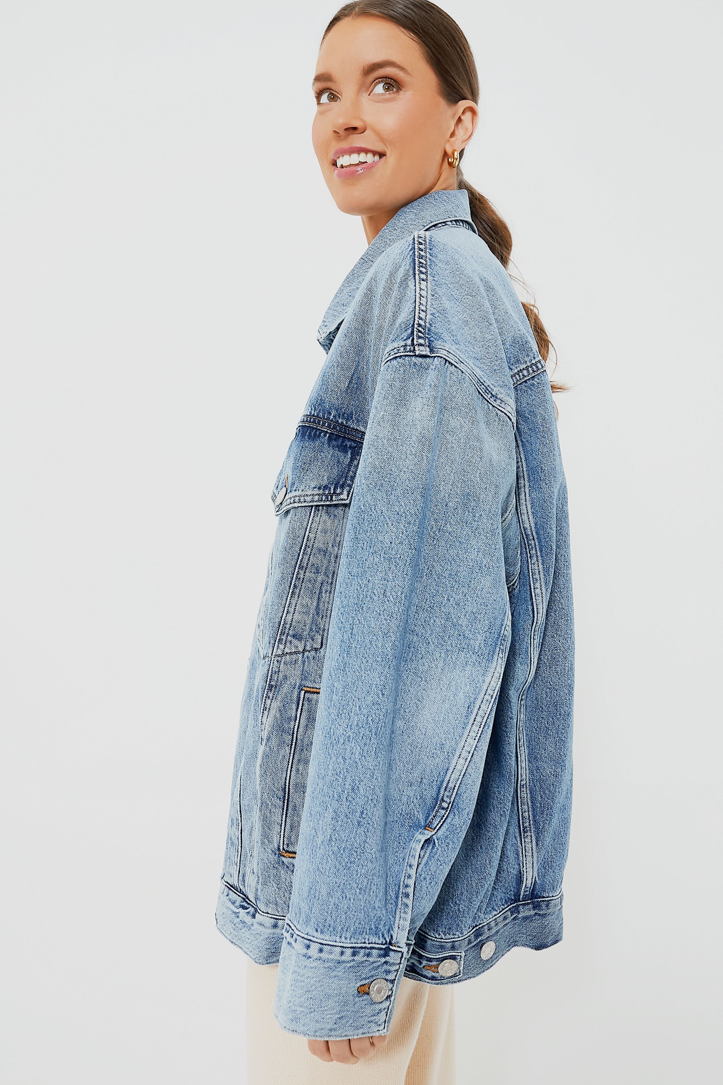 Taking oversized to the next level. the Malice Wayne Jacket channels versatility as much as vintage. Crafted in the brand's signature weightless organic cotton. this super-relaxed. super-slouchy silhouette features all the cool characteristics of a classic denim jacket and is perfect for layering over just about everything and anything. Pair with trousers. jeans. or skirts — this stunner is about to become your go-to!