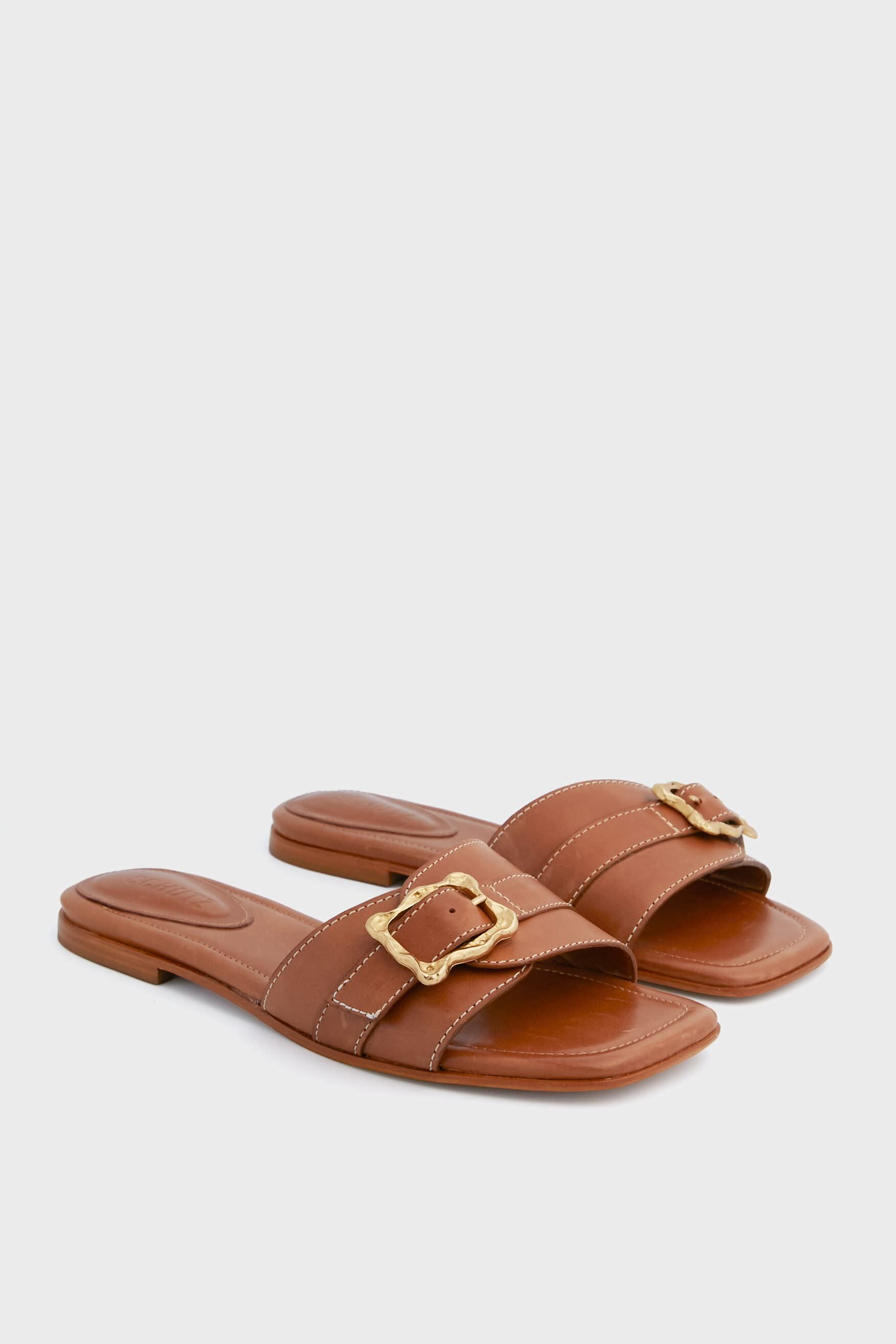 Elevate your summer style with our Wavy Leather Sandal! The fancy bold buckle adds a touch of sophistication. making these sandals the perfect choice for any adventure.