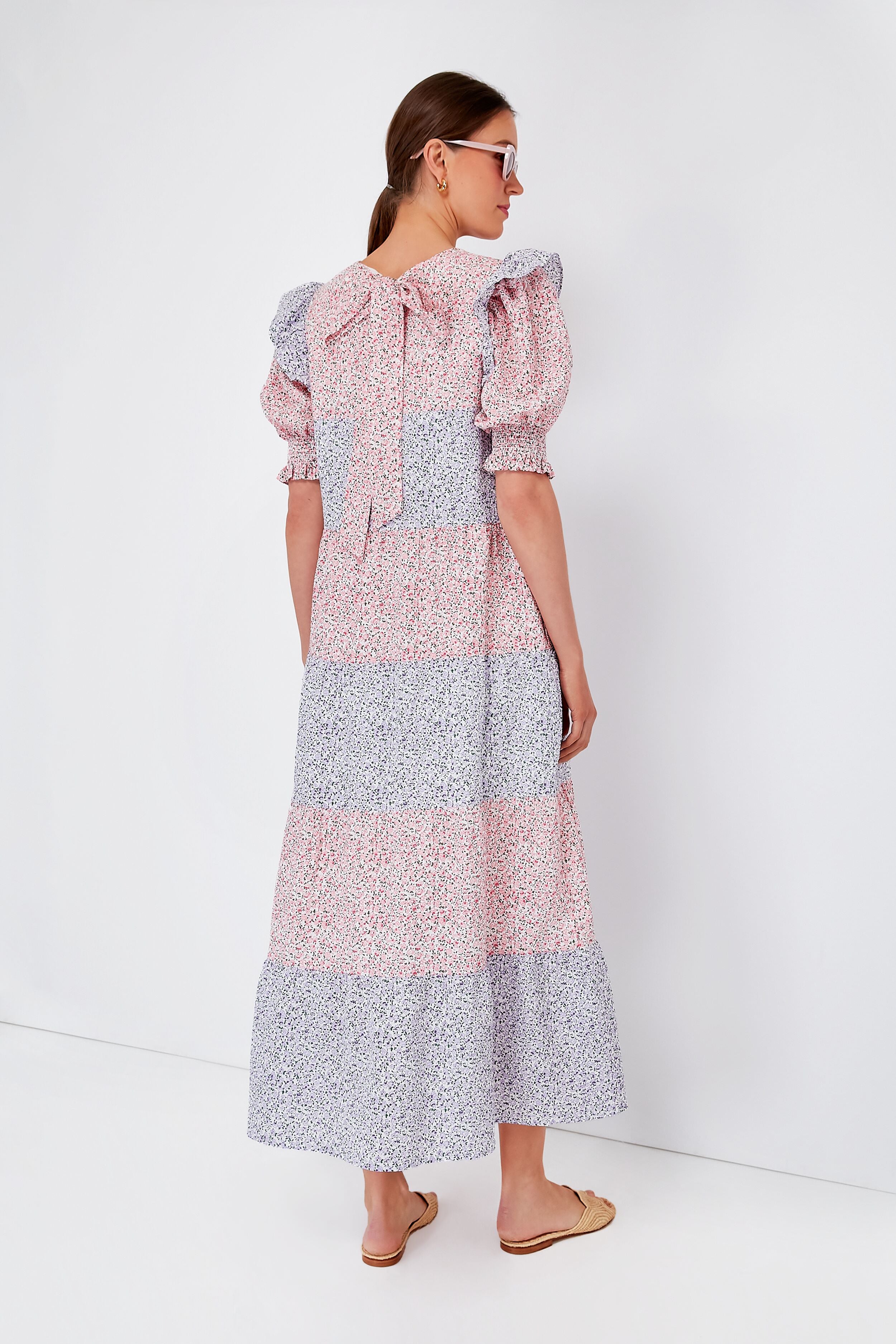 Versatile as it is chic. the Barton Dress is sure to be on repeat this season. Featuring on-trend floral color blocking. ruffle details at the shoulders and perfectly puffed sleeves. this maxi will take you from coffee runs to lunch dates with ease. Pair with raffia sandals and a straw tote for those on-the-go days. and swap into espadrilles and a party clutch for al-fresco happy hours with friends.