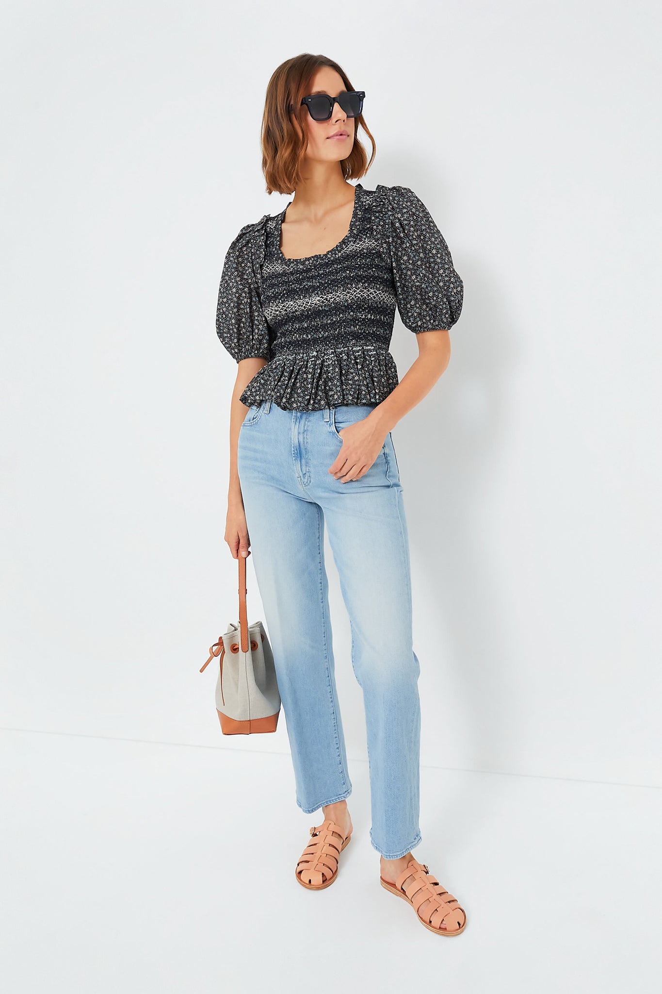 The Multi Maia Floral Print Top is sure to be a well-loved piece in your closet for years to come. Statement puff sleeves enhance the charm of this boho-inspired blouse fixed with frilly ruffles and a smocked bodice. The ditsy floral pattern is season-less. meaning you can wear this with denim shorts and sandals in the summer and with a jeans. cardigan and boots in the fall.