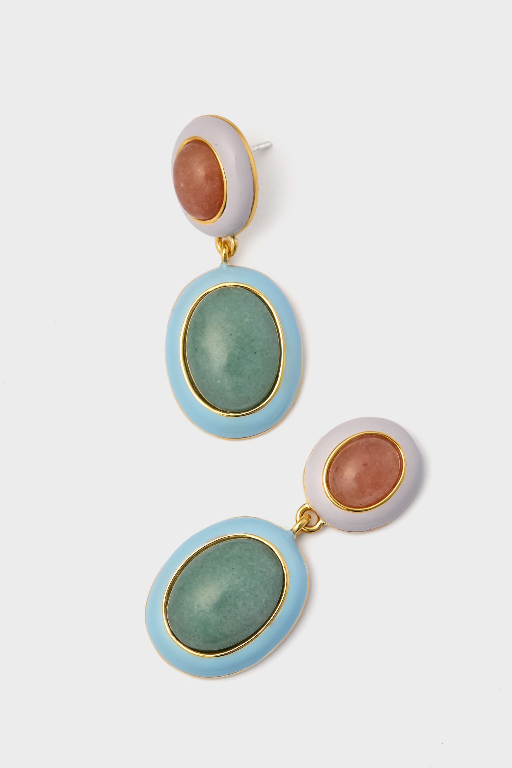 The Multi Papaya Earrings are ripe for the picking! These colorful and playfully elegant drop earrings suspend pastel enamel frames centered by vibrant amazonite cabochons for a tropical burst of color. Perfect for adding a touch of color or a hint of shine to a basic look. these look incredible with a classic blouse and denim — but don't get us wrong. they are gorgeous with a bold print for a maximal look too!