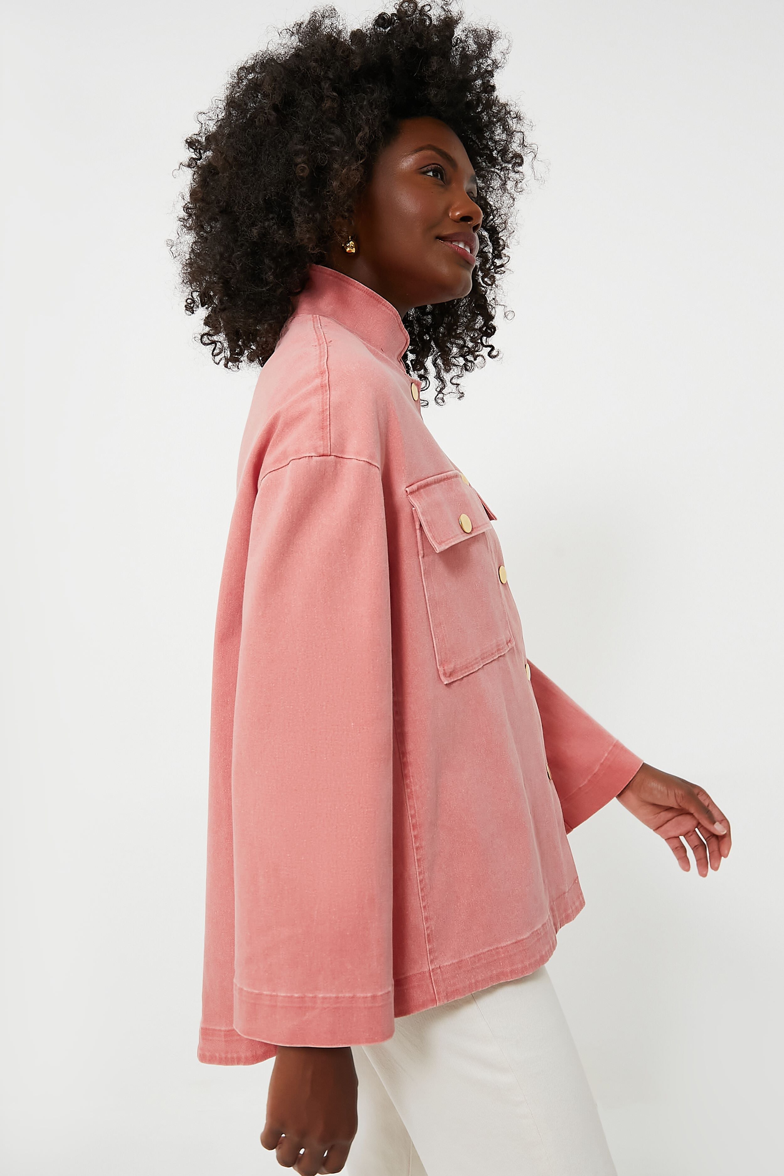 Reminiscent of high fashion with minimalist and modern details. the Marant Shirt Jacket is now recolored in the can't-miss color. With a stand collar. and gold buttons. this layer is a year-round style that can be worn to countless occasions. From work to brunch. it effortlessly pairs easily with everything from shorts to denim to midi skirts and more.