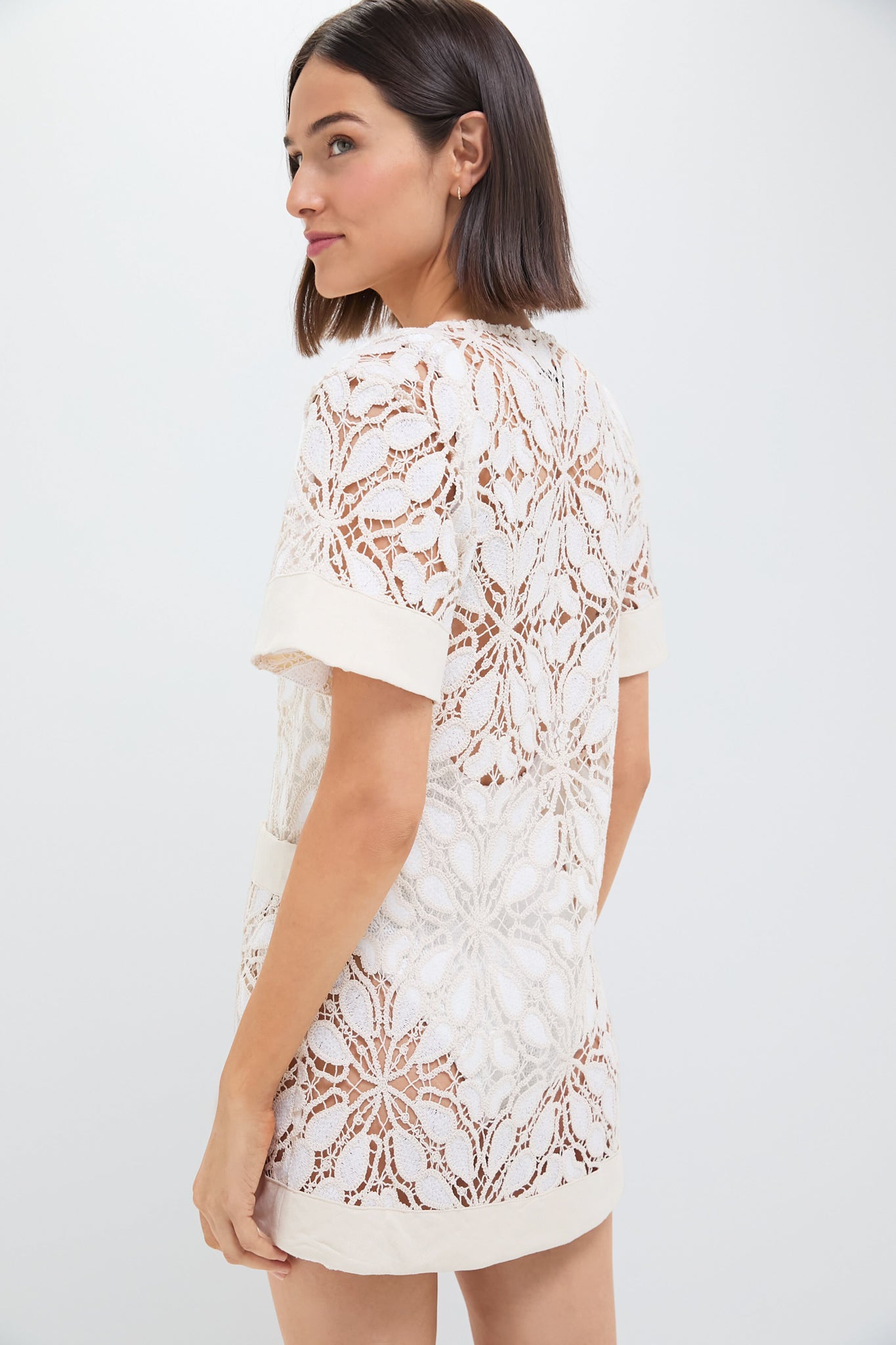 The Dion Mini Dress is the ultimate warm-weather style for throwing on over a swimsuit. The unlined crochet pattern makes for a flirty. yet sophisticated look. while the neutral colorway means it will match anything and everything. Pair with raffia accessories and sunnies for the getaway you've been dreaming of!