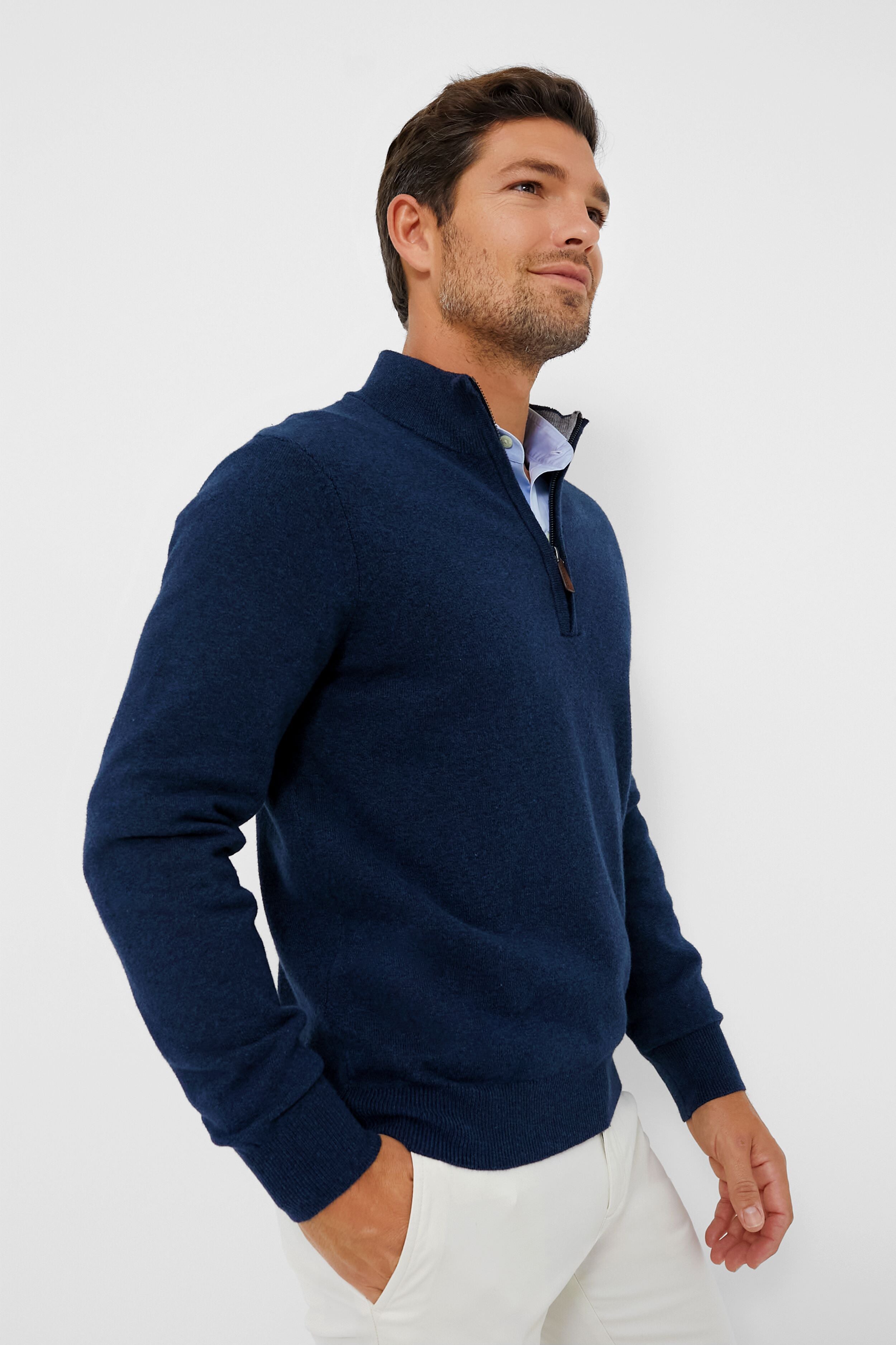 Softness and stretch pair in perfect balance with the Navy Heather Jackson Quarter Zip. Endlessly versatile in a classic silhouette. it is roomy (but not boxy!) and has moisture-wicking properties so even when you're indoors. it never feels too heavy. Wear this into the office on casual Fridays then go directly to happy hour afterwards. no outfit change needed.