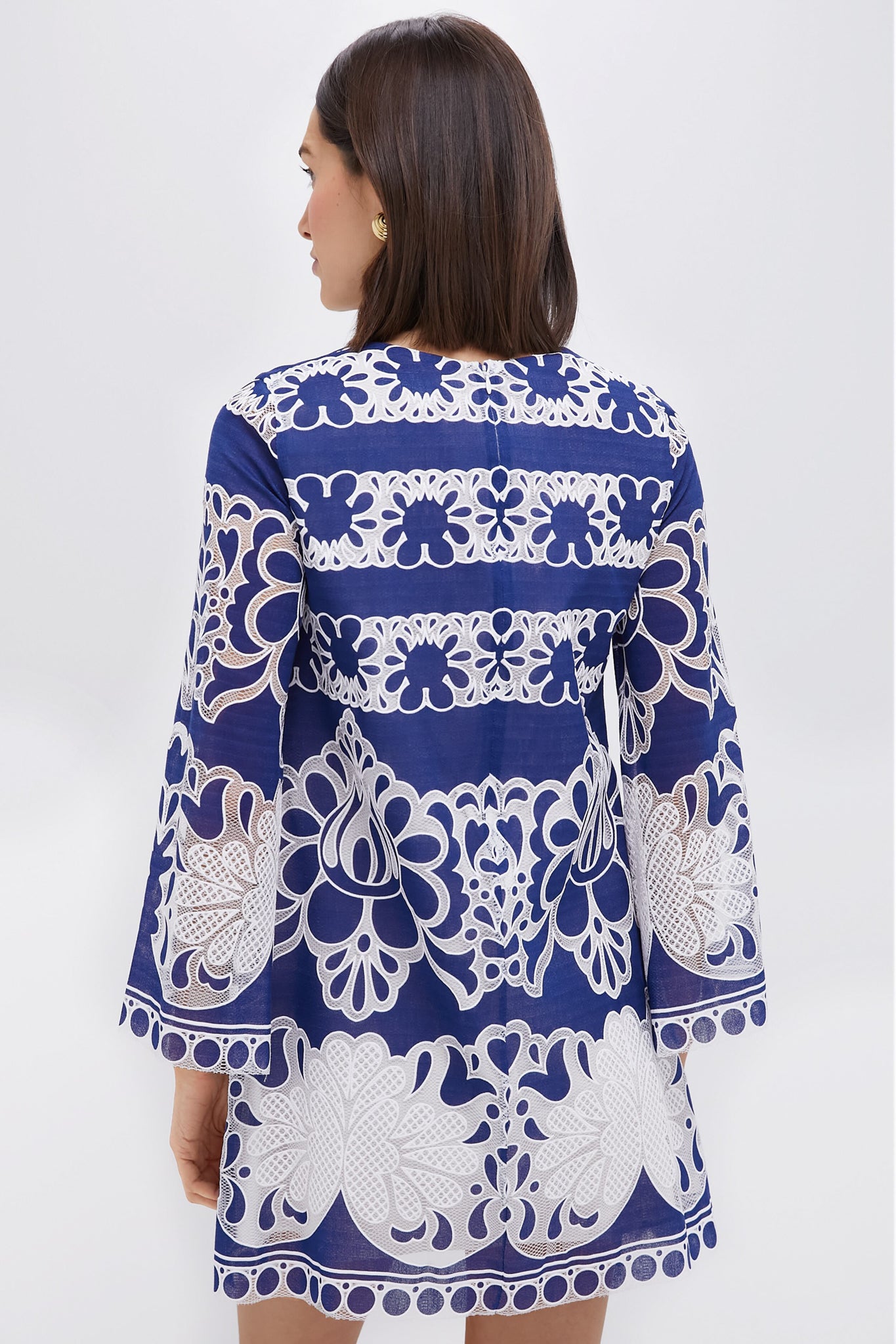 The Navy Stevie Lace Dress boasts an A-line shape and fluted sleeves create a flattering. easy-to-wear silhouette that suits every body type. offering a look that's both comfortable and effortlessly elegant. Pair with black heels and a clutch for a timeless. sophisticated event look!