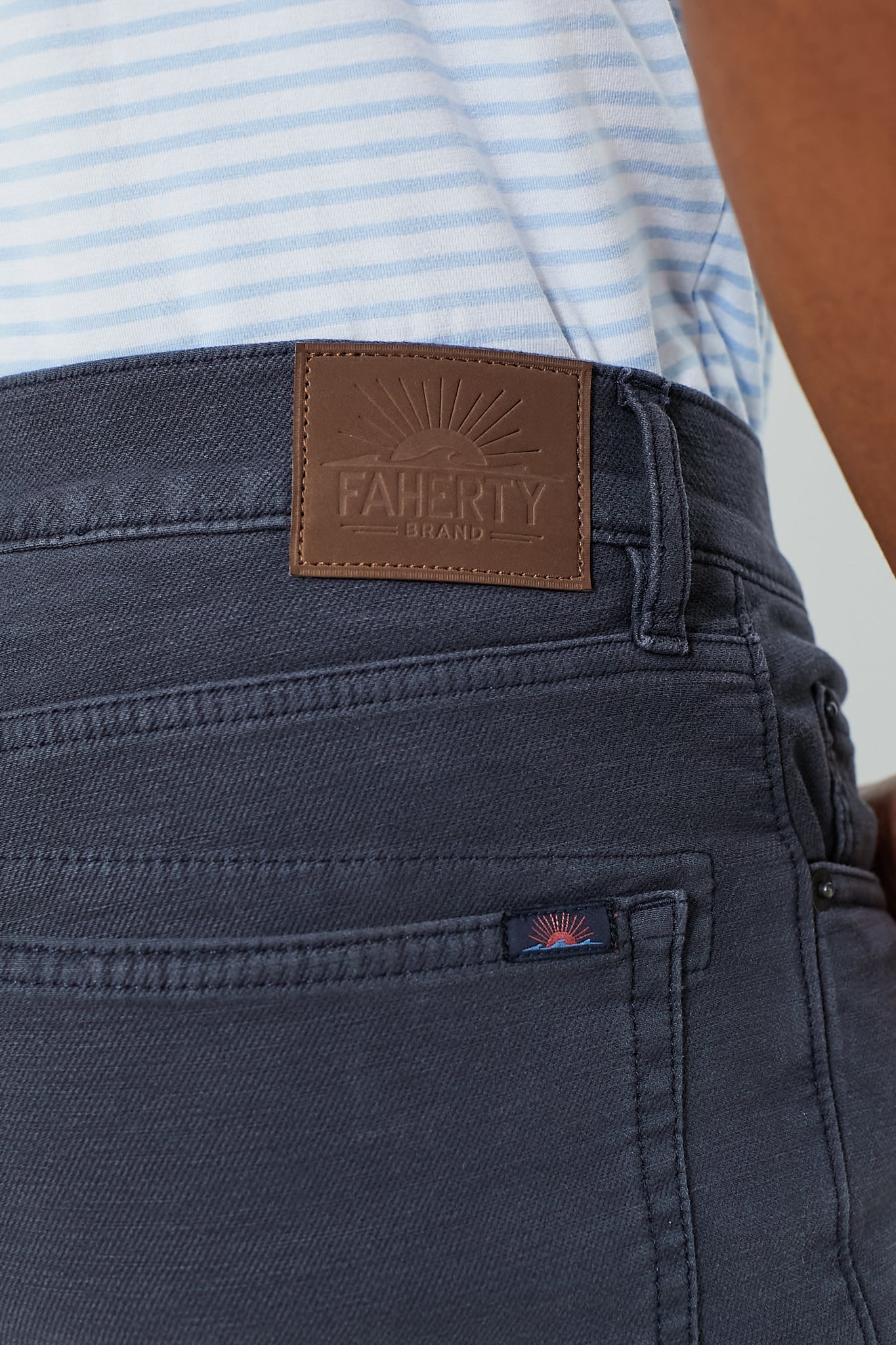 - Faherty patch at back waistband