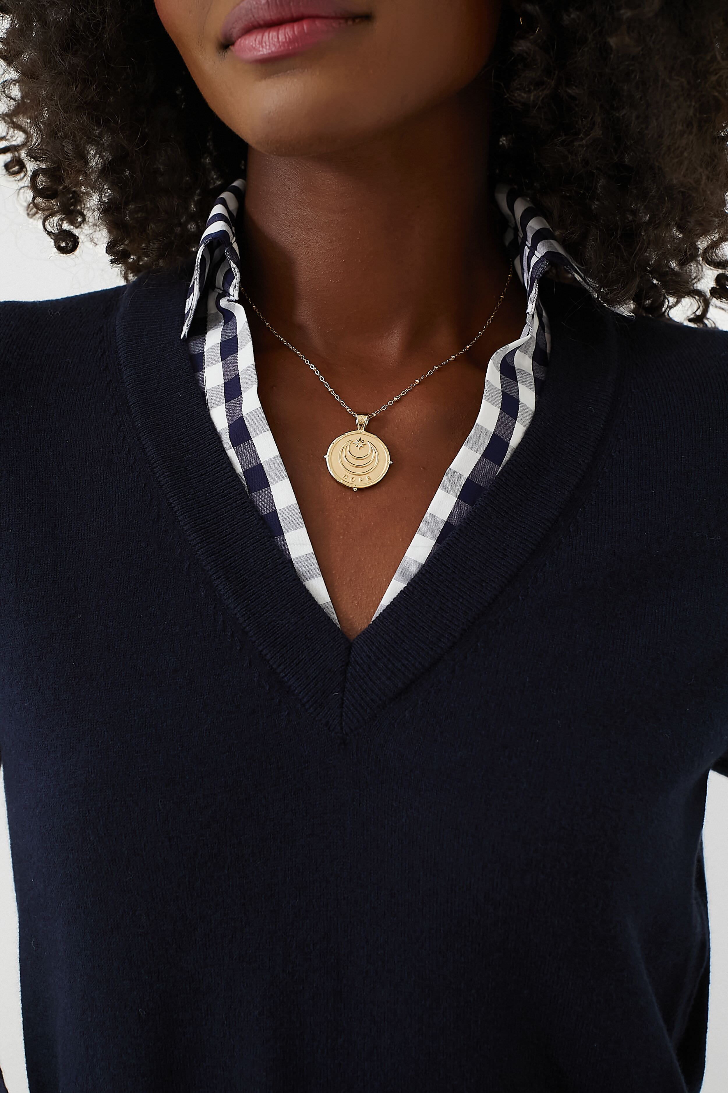 A perfect two in one! The Navy Wool and Cotton Combo Sweaterdress is the perfect fall piece. With a classic checked shirting underlayer and a super-soft merino wool sweater on top. this style is effortlessly chic. Throw this on with flats or leather boots for a cute and casual look. or with slippers for a cozy work from home outfit!