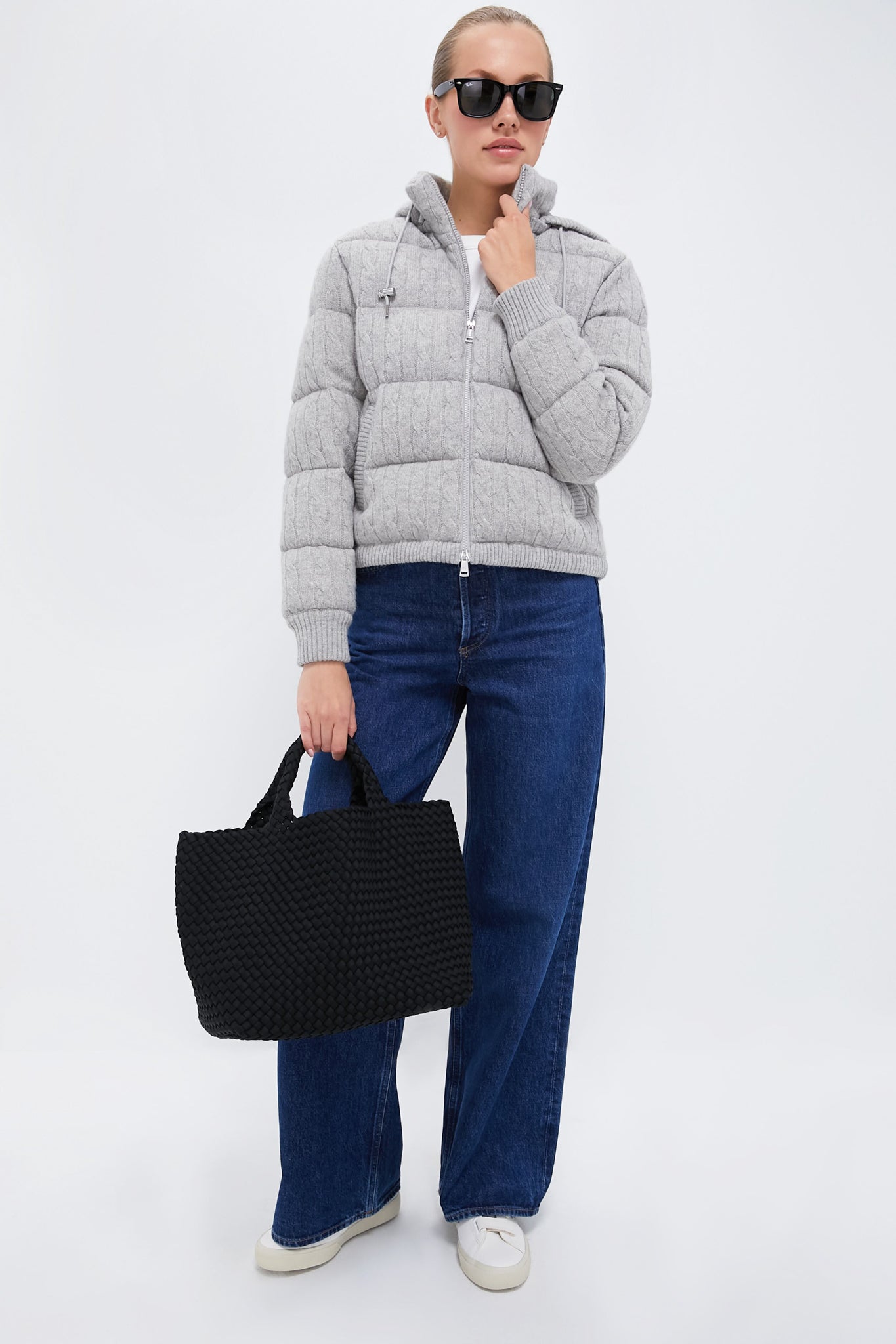 The Wool Cashmere Blend Insulated Coat is a cozy outerwear piece you won't want to take off this winter. With a zipper mock neck closure. snap-off drawcord hood. and duck fill it will be your new go to. With an endless way to style it we chose an everyday look: jeans. sneakers. and your catch-all tote!