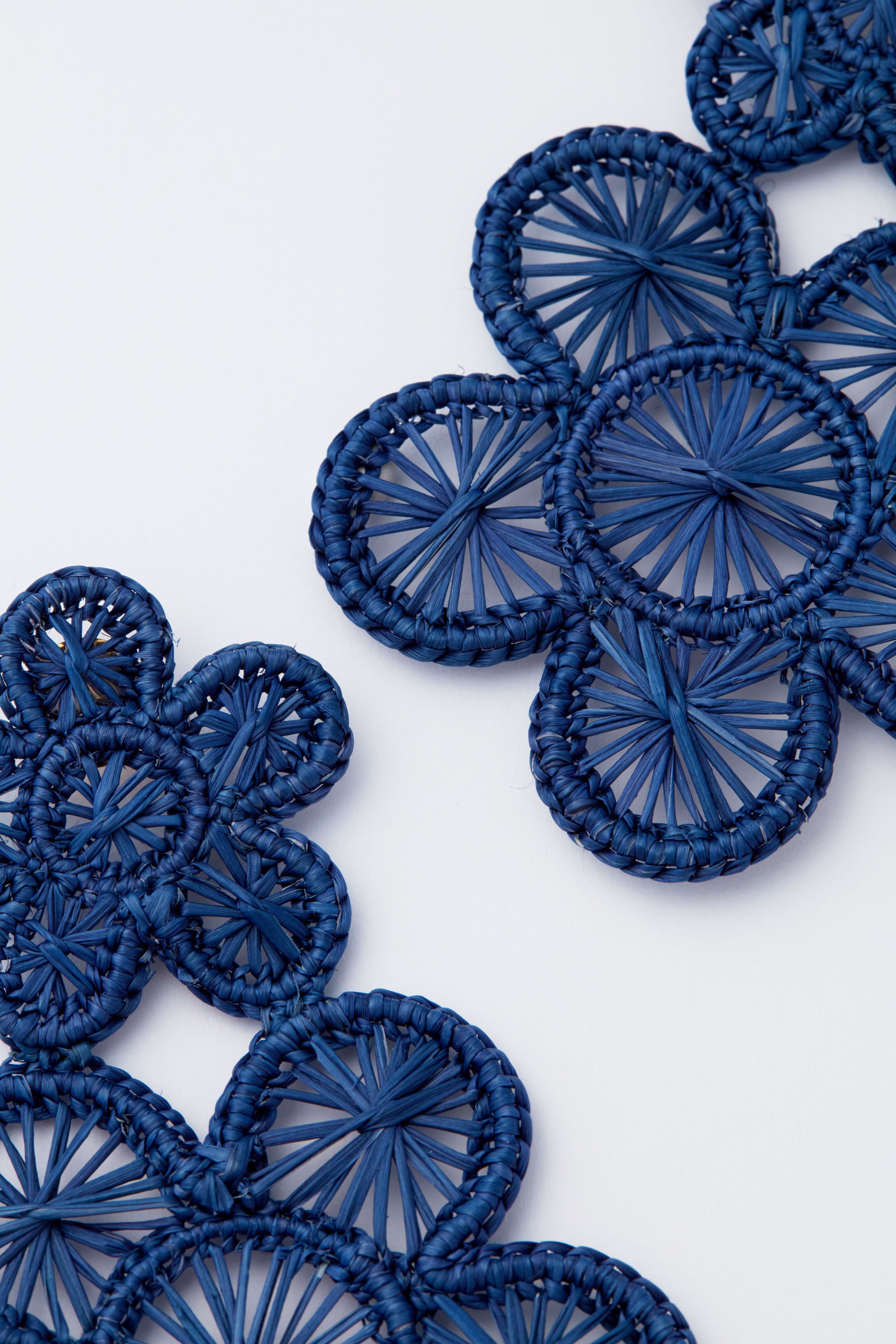 The Newport Bloom Earrings are made from natural rattan with dual dangling flowers. Intricate and effortless. these navy stunners are the perfect finishing touch for causal and formal looks all across the board!