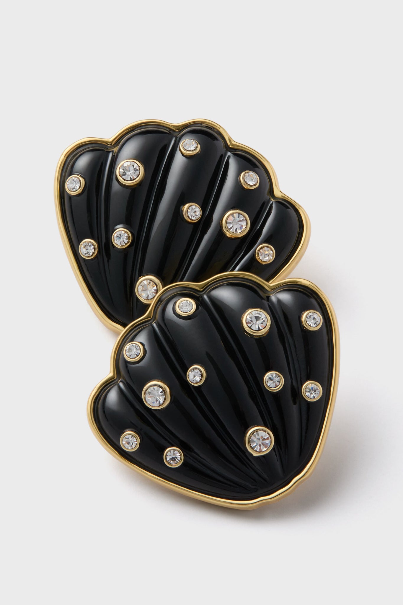 From the beach to the bar. and everywhere in between you're sure to impress when you wear the Noir Celia Shell Studs! Featuring a shell shape stud with bezel set glass stones making it perfect for upcoming travels and coastal wear or simply pair with a crisp white shirt for a bold contrast.