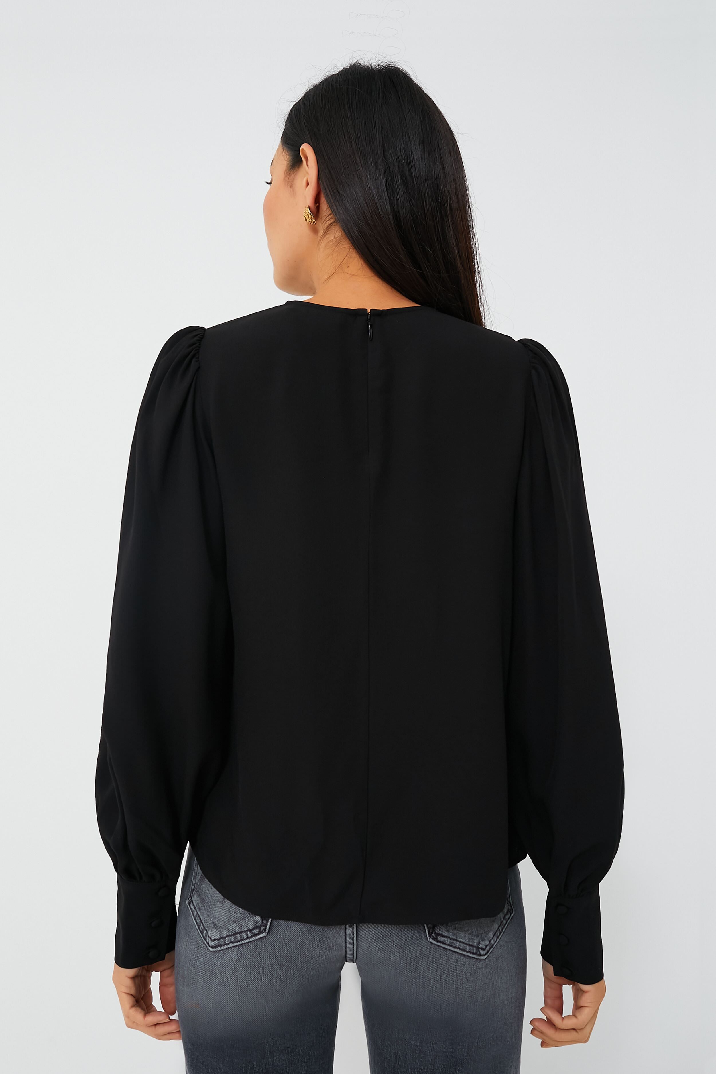 The Noir Lilliana Blouse is the epitome of a style staple. with an elevated twist. In a neutral and ultra-wearable black viscose satin. this top has a beautiful flowy drape that is complemented by the effortlessly feminine bishop sleeves and wide cuffs. Made for wearing with denim and oversized sunnies for a glamorous everyday look. or with wide leg trousers and heels for a more sophisticated styling. this silhouette is a true must-have.