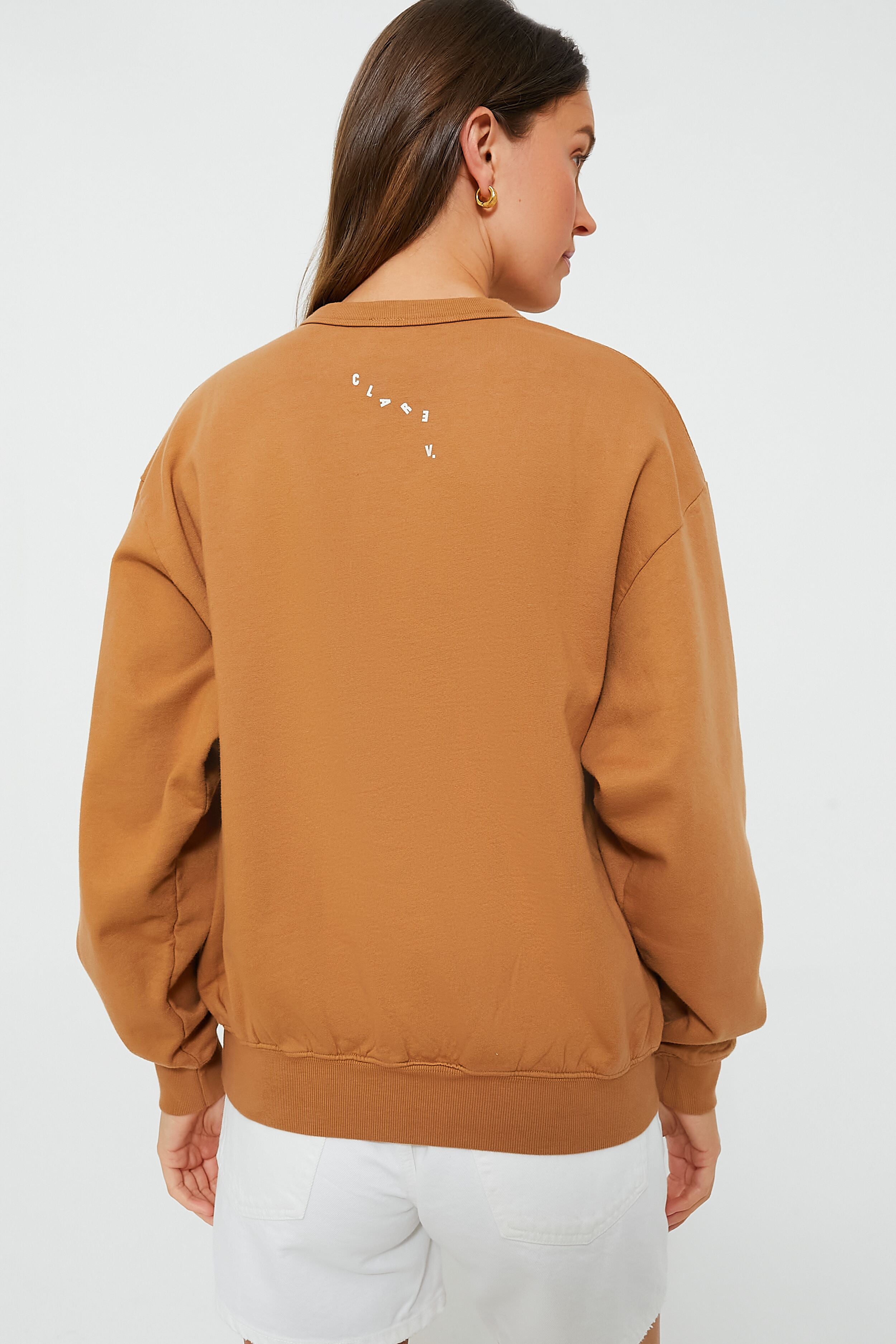 Crafted from soft cotton. the Nutmeg with Cream Block Ciao Oversized Sweatshirt is the comfiest sweatshirt that you will live in. A great addition to your closet. this layering piece has a subtle touch of fun and personality that you won't find elsewhere. Style over a button down with denim. or layer it with a tennis dress on chilly mornings!