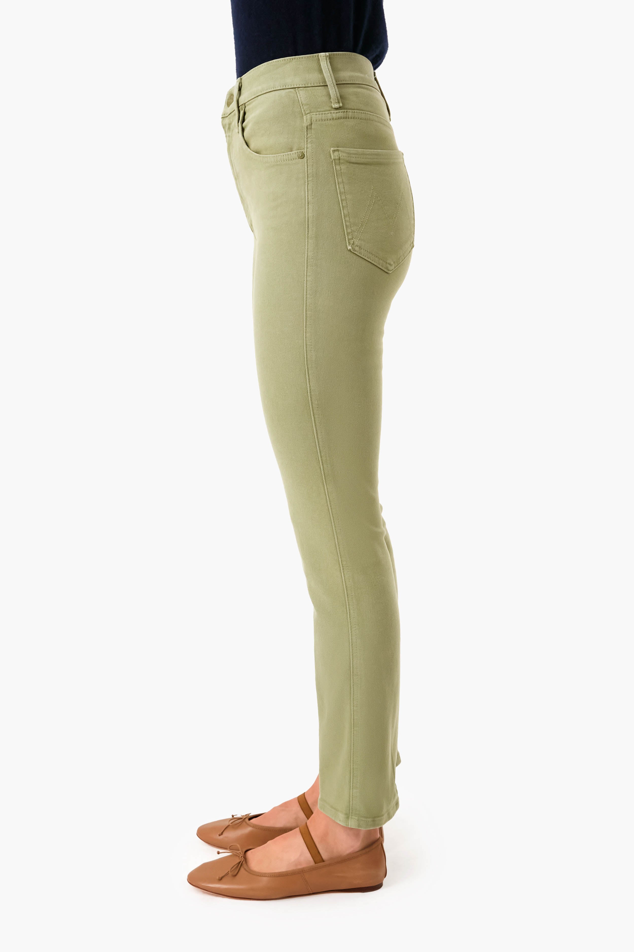 The Oil Green High Waisted Smokin Double Ankle is a fun spin on traditional denim. A high-rise flare with a narrow leg. cropped length. and a clean hem. these pair well with booties. flats. and sneakers alike. Wear this sage-colored style with a chunky knit to grab a hot apple cider with friends. or with a leather jacket to outdoor events as the weather cools down.