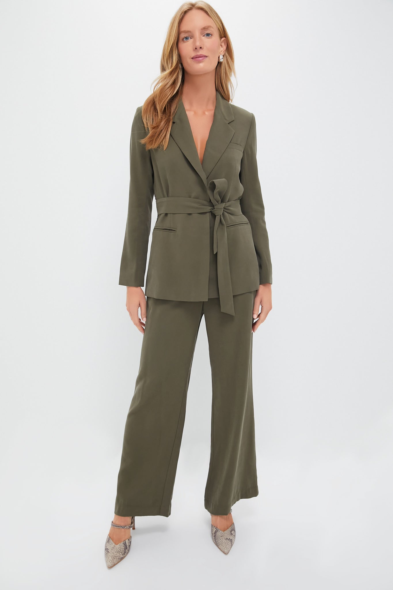 Featuring a classic straight wide leg silhouette in a neutral hue. the Erin Pants are perfect for everything from the office to date night. Pair it with the matching Olive Shea Blazer for a chic power suit moment. or style it with your favorite button-downs. tees. bodysuits. and more. they're sure to be ones you'll reach for time and time again this season.