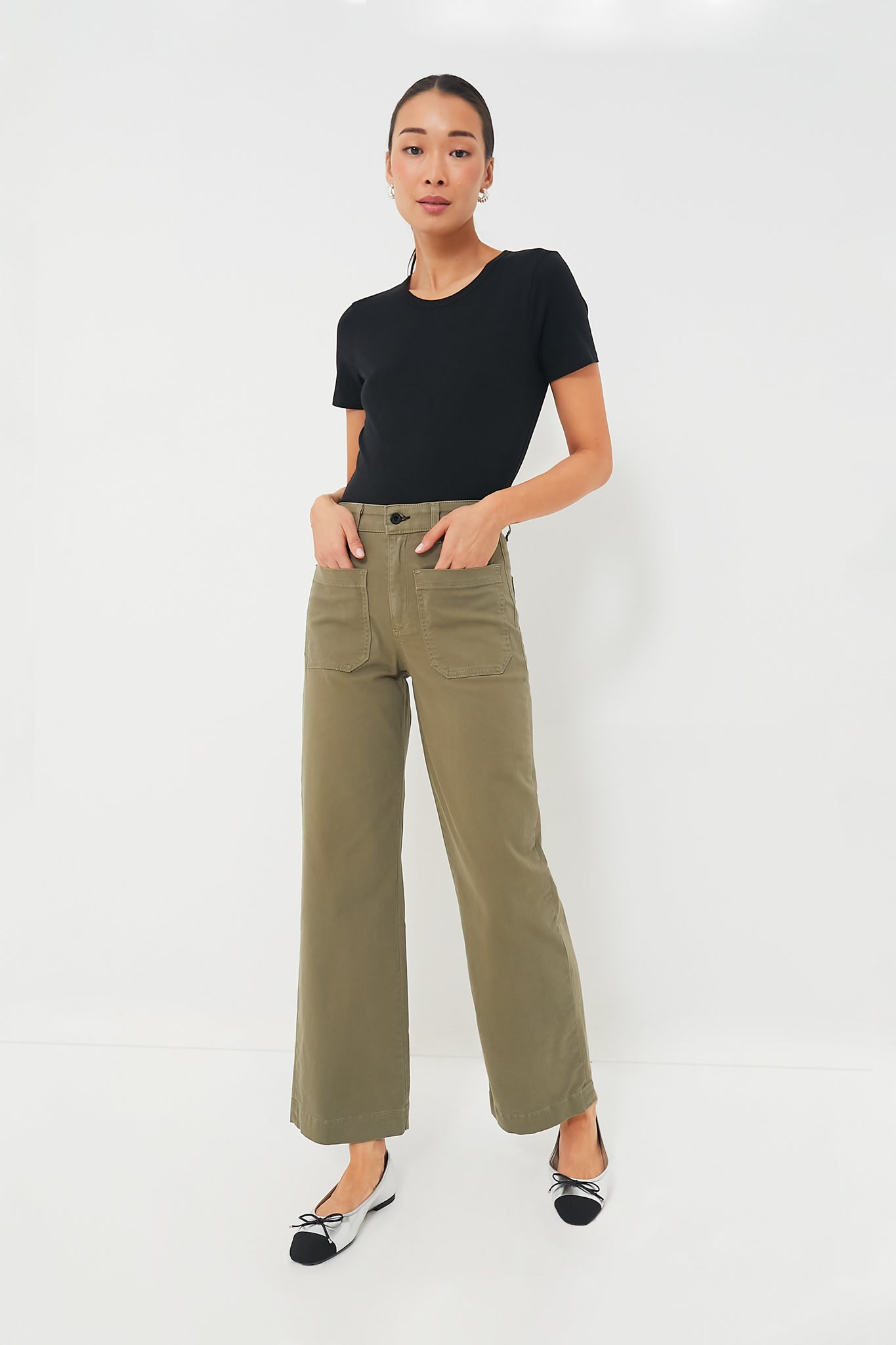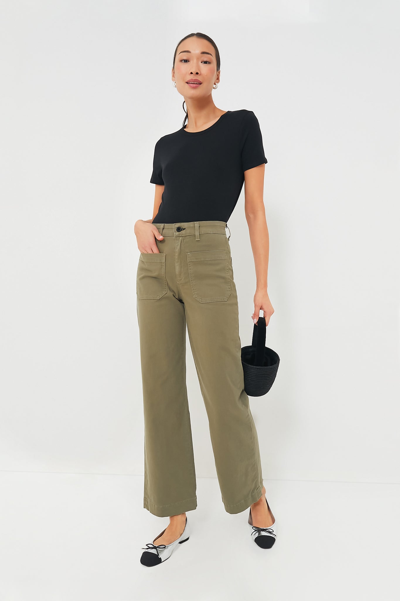 The Olive Sailor Pant has us all on board! Beautifully crafted from cotton-blend twill fabric. these jeans are full of character. Featuring a wide-leg cut. a dark wash. and fun patch pockets. these bottoms are ultra-versatile. Style with your favorite black tee and sneakers for a day exploring a new town. or dress them up with a printed blouse and sandals for dinners al fresco.