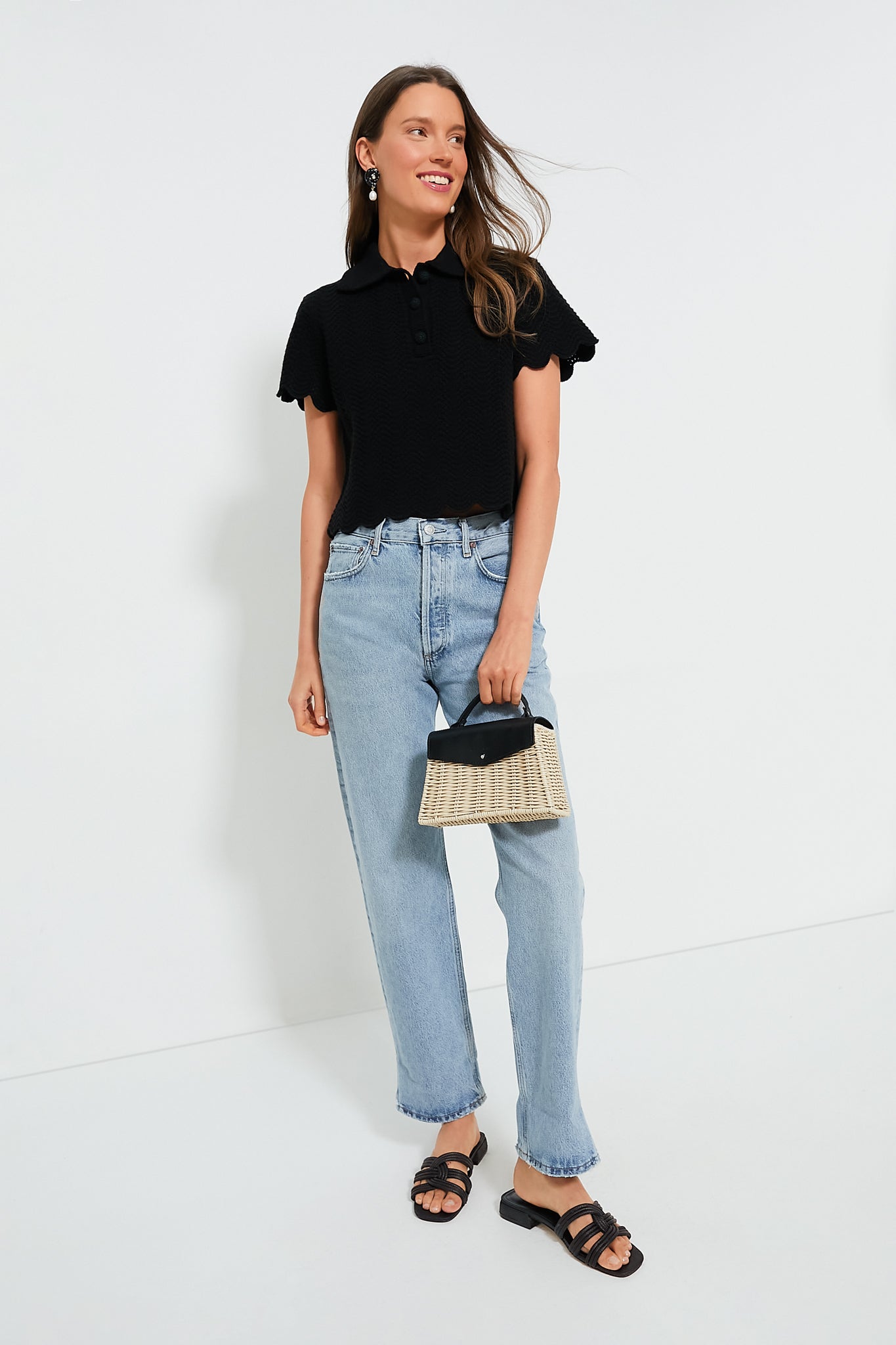 Elevated and chic. the Onyx Nadine Sweater is a playful pull-over highlighting a collared neckline. short sleeves. and cropped silhouette making it a perfect late summer knit. Perfect for day to night wear. its versatility knows no bounds - wear it to the office with tailored trousers for a polished professional look. or pair it with jeans for a laid-back yet stylish vibe.