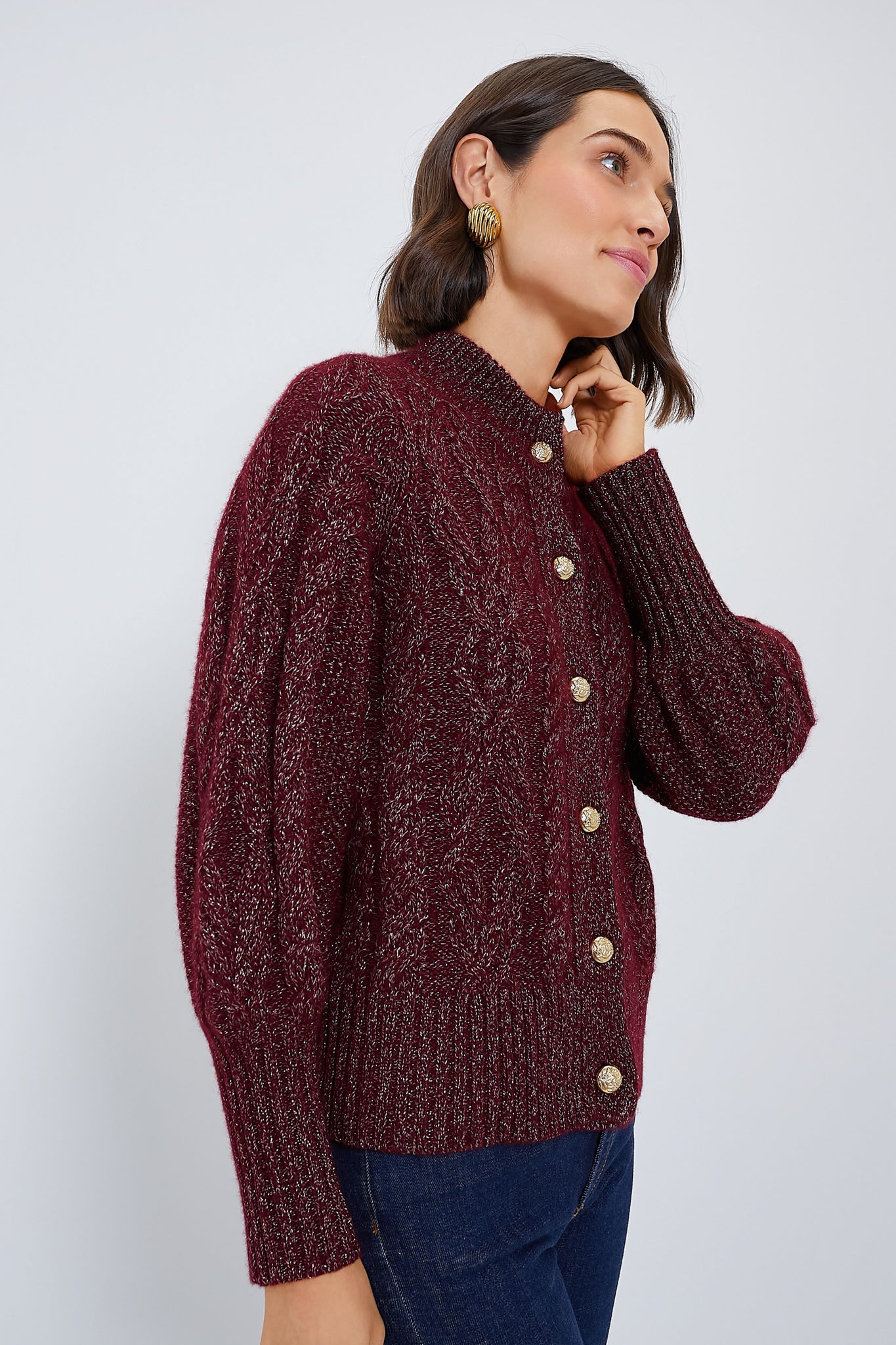 Chunky. cozy and always chic- the Oxblood Lurex Cashmere Colette Cardigan takes the very best elements from the classic style and updates it with exaggerated bishop sleeves. gold buttons. and a slightly cropped but not too short length that makes it perfect for layering over dresses or styling solo with high waisted pants. Dressed up or down. in the office or out to dinner. the possibilities are endless with this transitional piece.