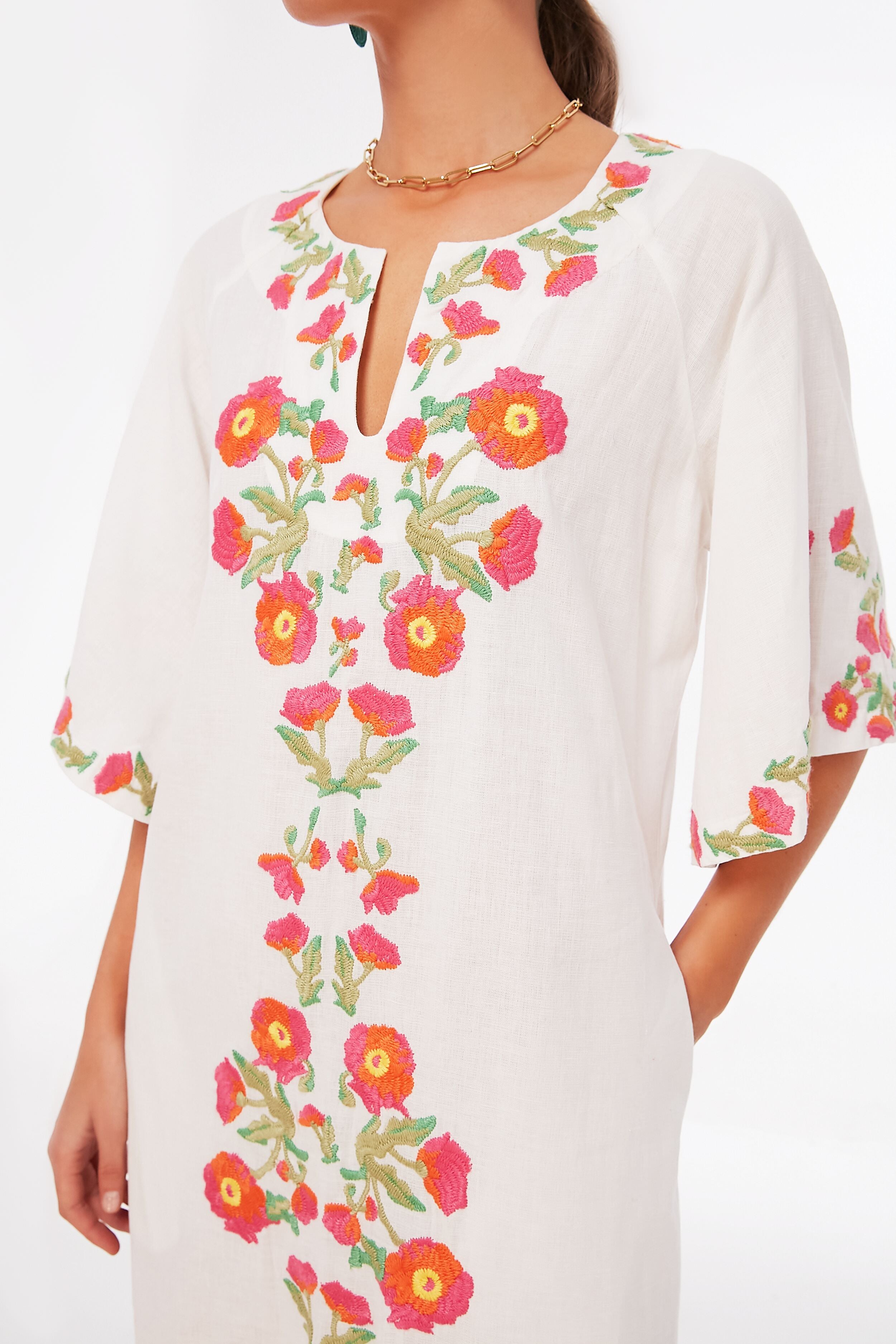 Featuring custom poppy embroidery. the versatile Oyster Charming Maxi Poppy Caftan will be a bright spot in your closet. A notched neckline and short bell sleeves make this a chic style suited for a tropical getaway. and the vibrant florals add a pop of color that is sure to make you smile. Versatile enough to wear over a swimsuit with sandals for a day spend poolside. or with a sunhat to grab a cocktail from the tiki bar. this silhouette is going to be a favorite. we just know it!