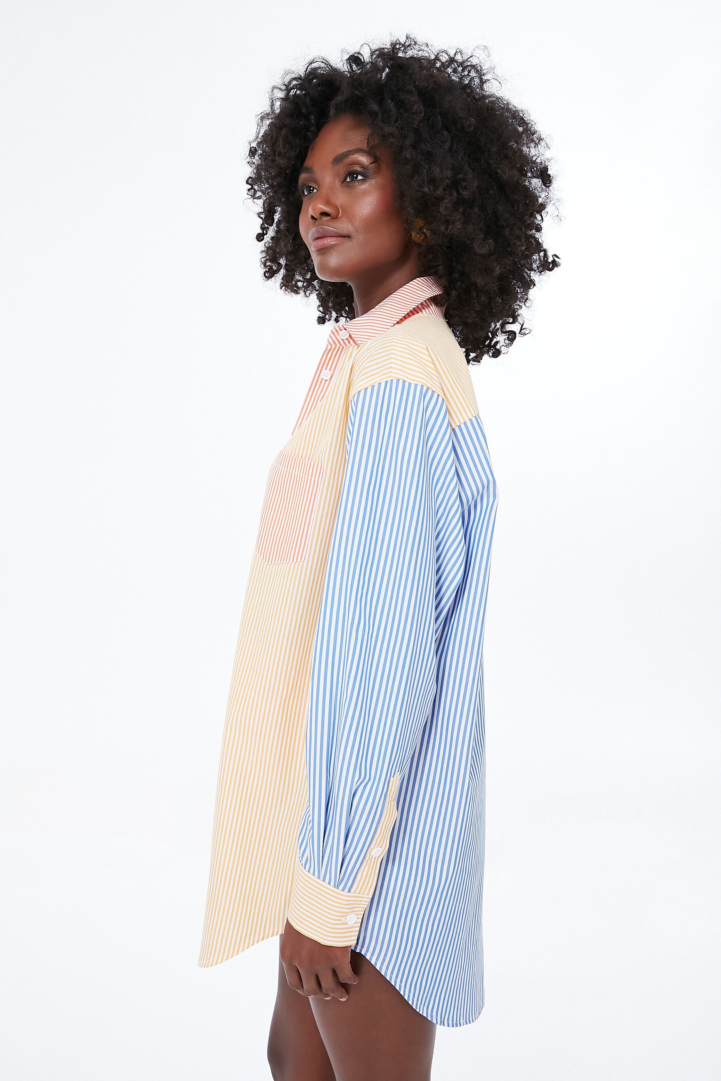 The Pacific Blue Stripe Oxford Tunic is a timeless staple that's sure to spice up your vacation wardrobe. Featuring a front button closure. left patch pocket. button cuff closure. and a hanger loop on the back. this cotton. striped top offers all the versatility you need. Wear it unbuttoned as a cover-up. or pair it with your favorite bottoms for a transitional look all year long.