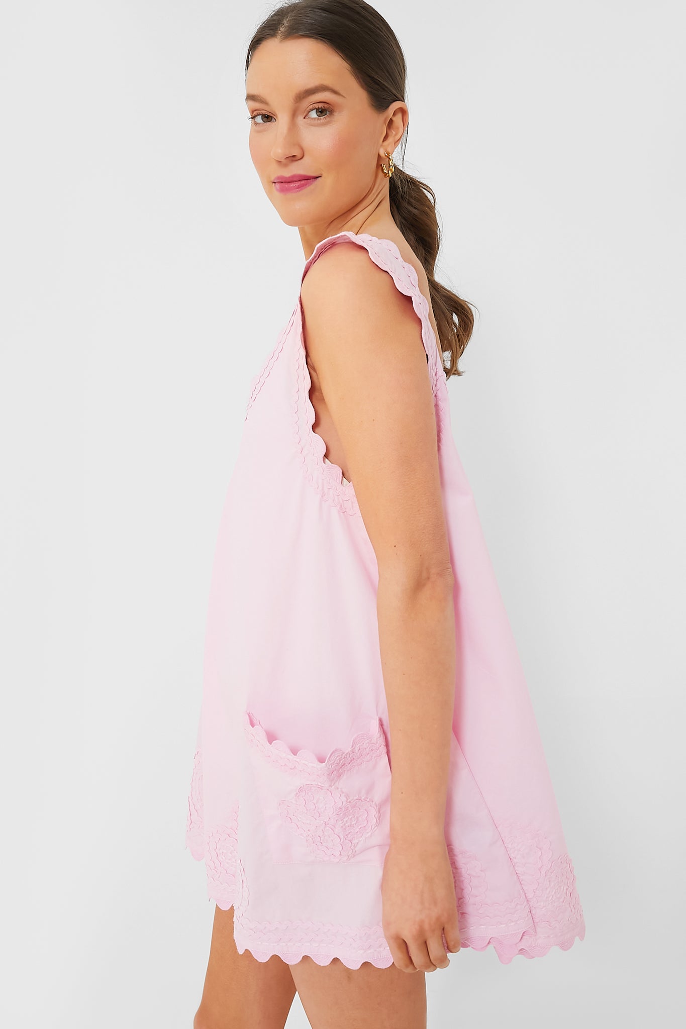 This one size dress is perfect for carefree fun in the sun! Keep your phone and lip balm to hand with the deep patch pockets. The ric rac finishing across the straps and hem create a statement silhouette. This pink floral block print is fun and fresh for the season ahead. Pair with sneakers or sandals and you are ready to head out the door!
