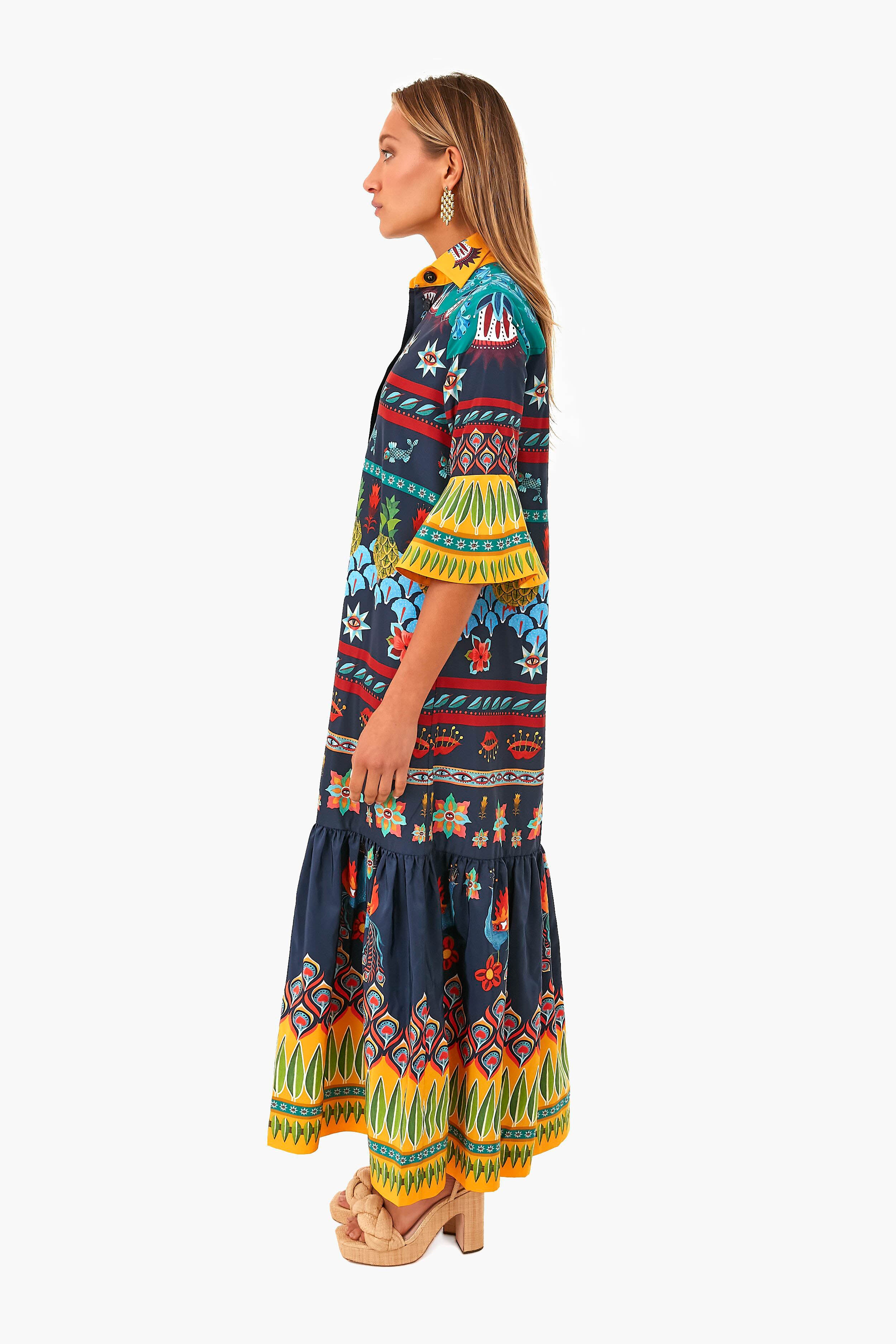 The Patchwork Occhi Artemis Dress is unique and dramatic. Cut in a voluminous shape with three-quarter length fluted sleeves. this dress is as comfortable as it is show-stopping! A point collar and half button placket make this look slightly tailored and add versatility. Grab a tote bag and wear all day long. or wear with heels to dance the night away.