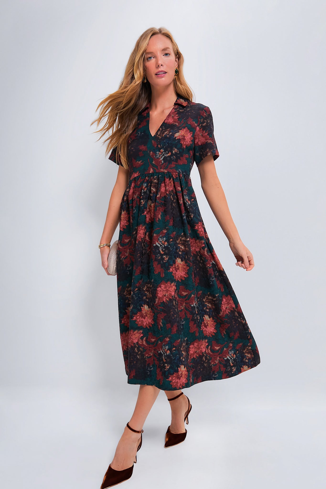 We are loving the Adelaide Dress for its luxe jacquard fabric and flattering details. This midi boasts a collared V-neckline and fitted bodice that open into a gathered A-line skirt. We are pairing it with ballet flats for the office or with heels for evening cocktail parties!