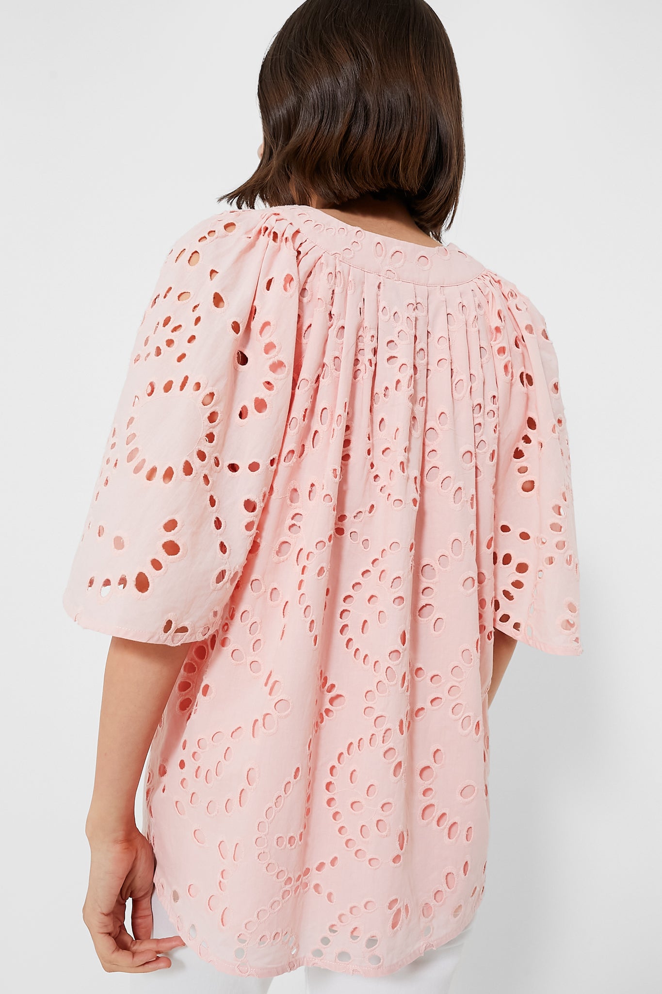 The Pink Salt Eyelet Finley Top is effortlessly chic and a style staple. Updated in a refreshing eyelet fabric. this blouse has a flattering silhouette. oversized flutter sleeves. and a V-neckline. Pair with gold accessories for everything from work to brunch for an effortlessly elevated look.