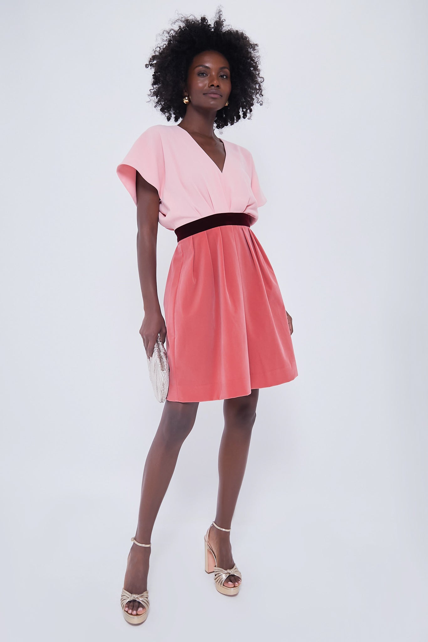 A peachy pink velvet mini
