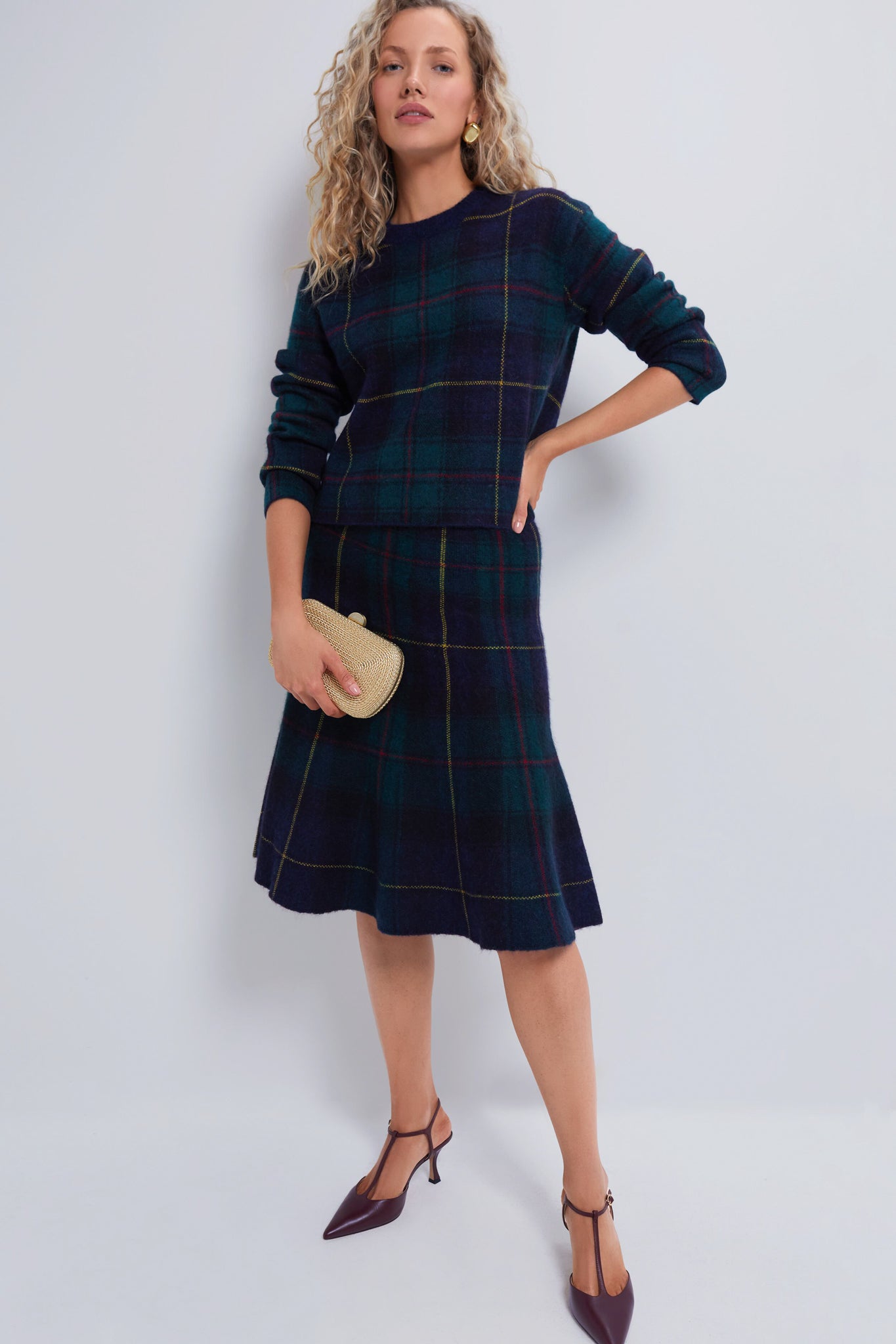 This timeless look is crafted from an ultra-soft alpaca blend and boasts a crewneck. long sleeves. and rib-knit trim. Style with denim and sneakers or dress up with the matching Polo Tartan A-line Skirt and heels for a festive set!