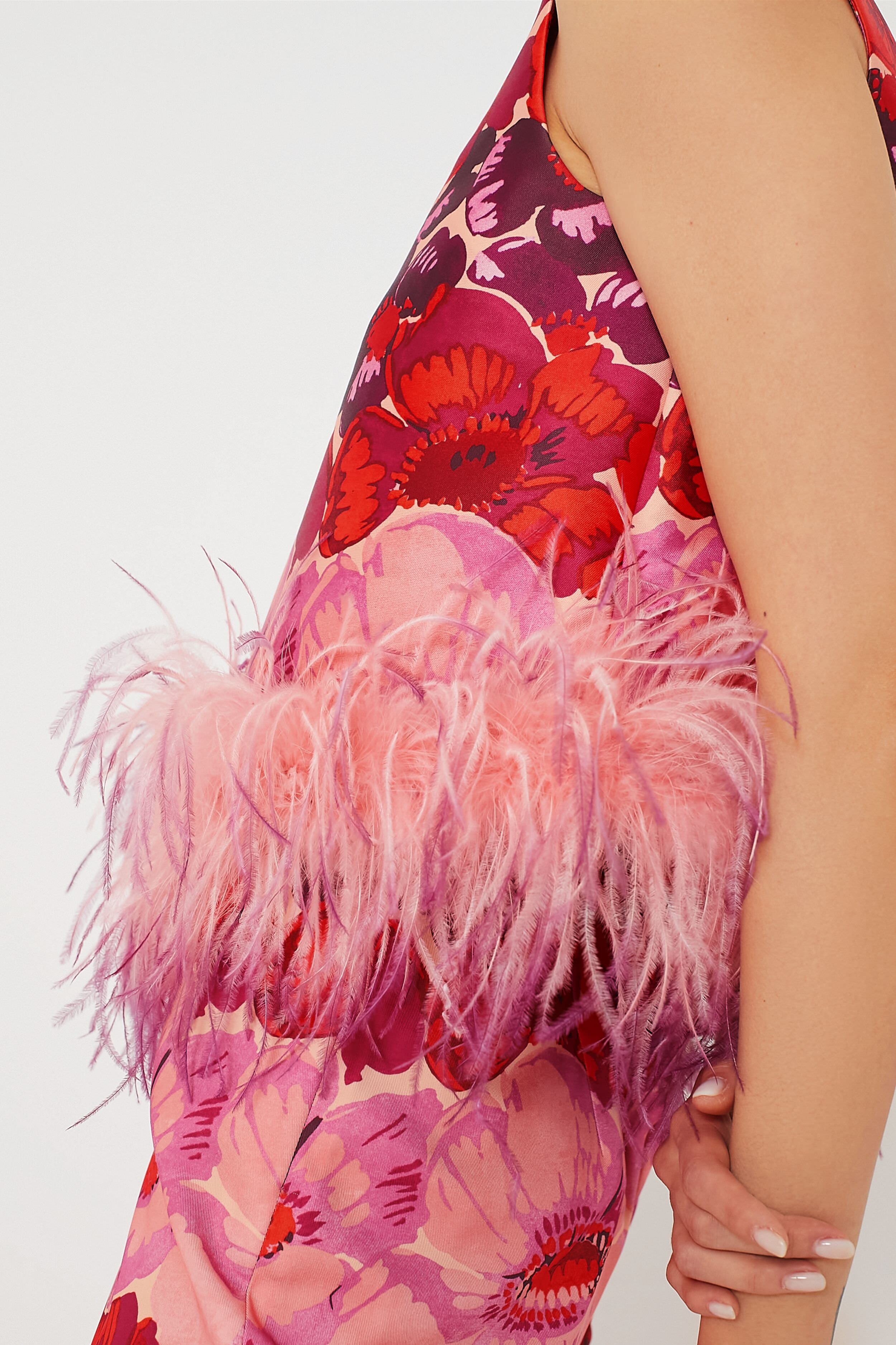 - Feather trimmed hemline